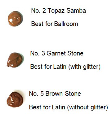 Color No 2 Topaz Samba This heightened brown tone with diamond gold pearl adds an outstanding, sexy sheen to your to your skin. Recommended for Ballroom dancers who do not need to tan the skin very dark.