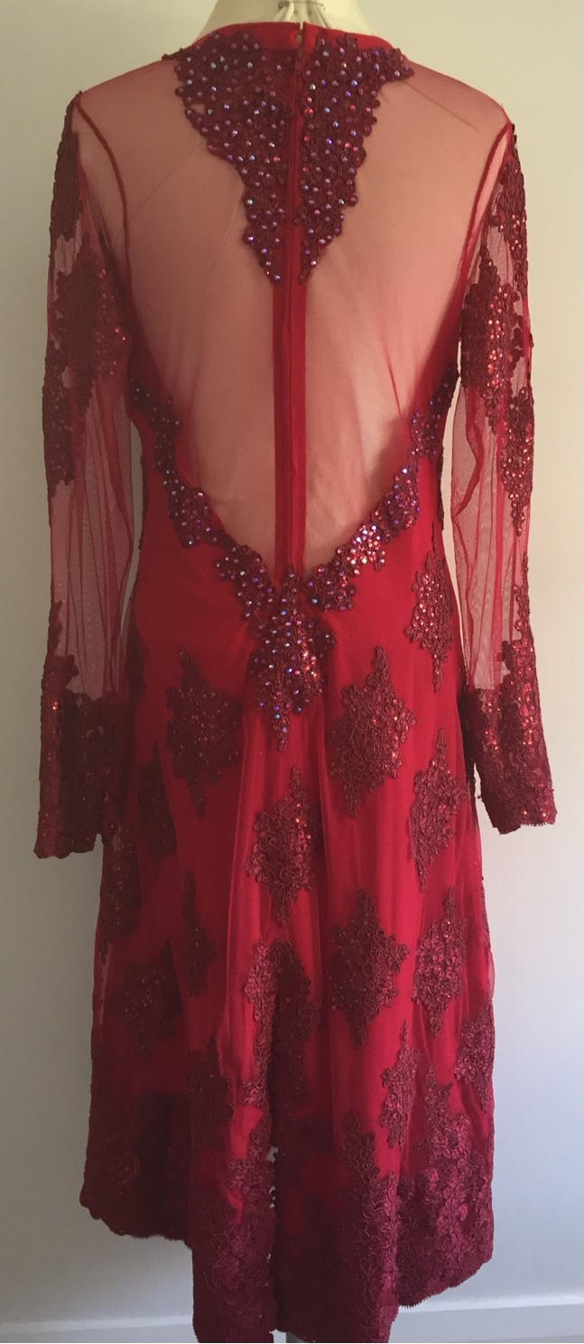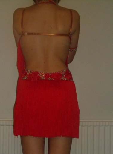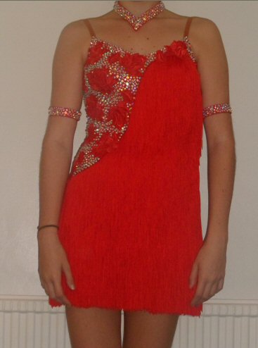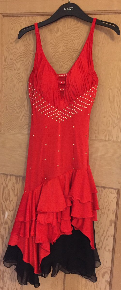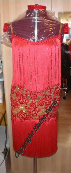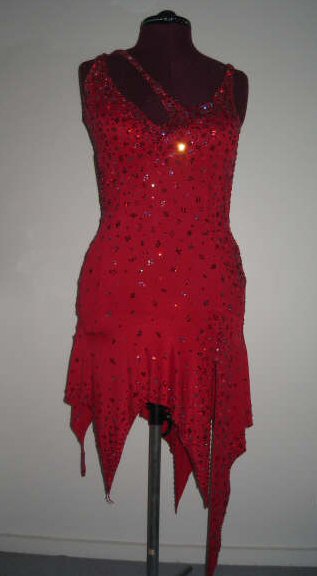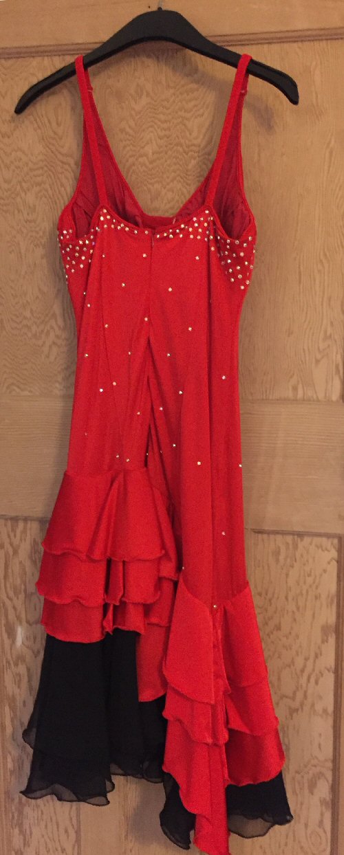 Red latin dress. Size 8-10 UK, Handmade by Linda Worrall. Decorated