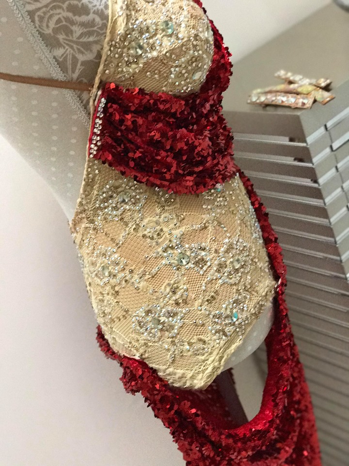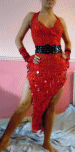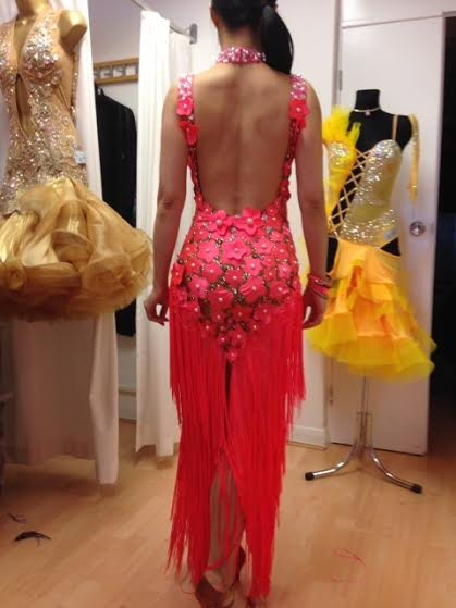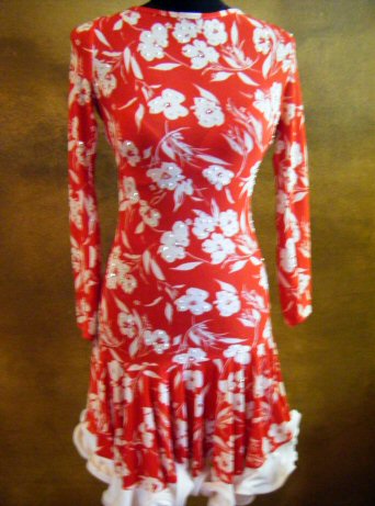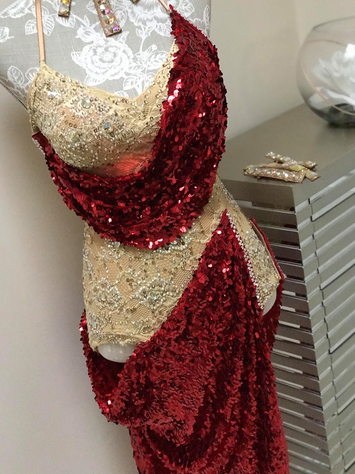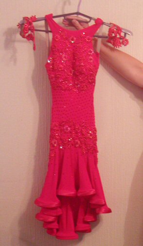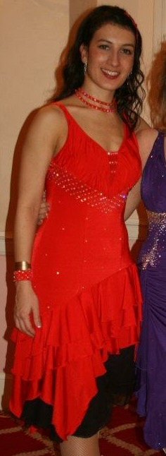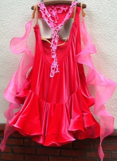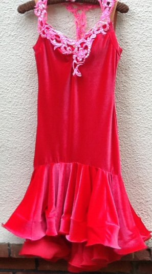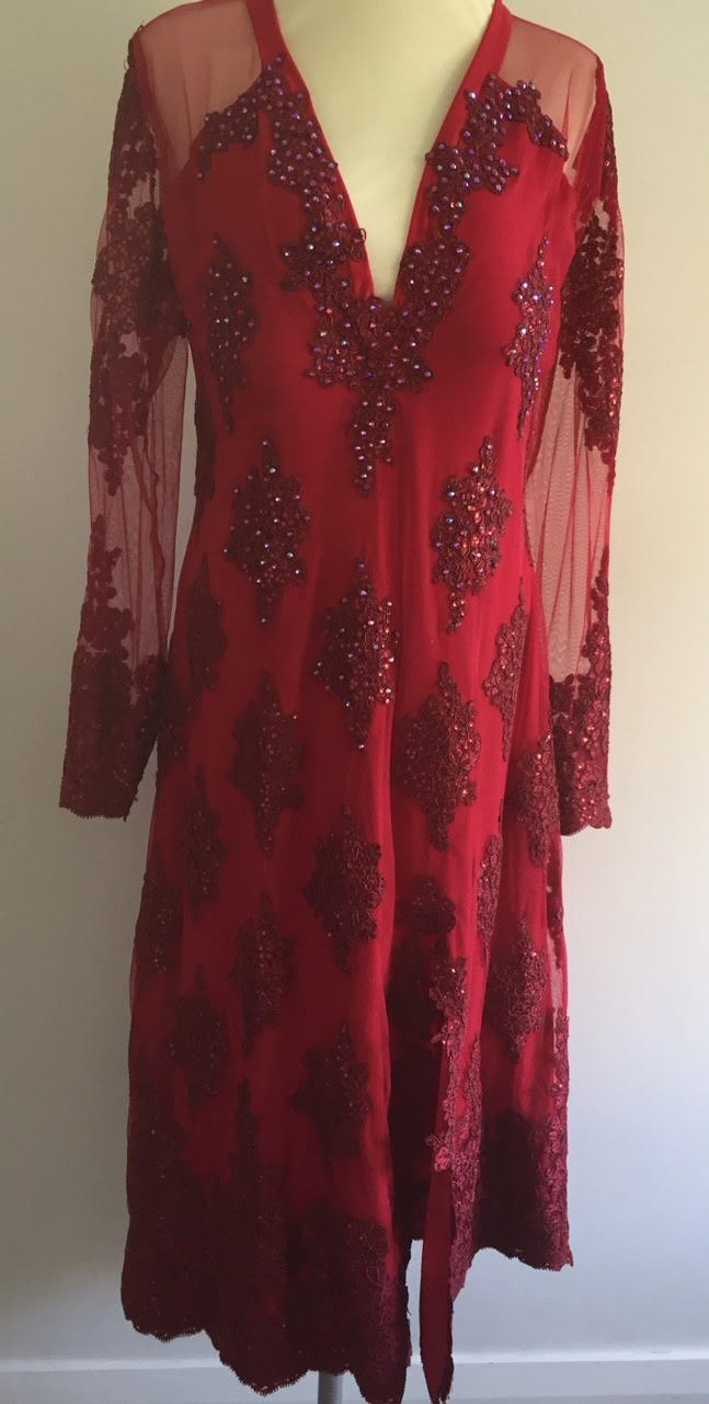 Red latin dress. Size 8-10 UK, Handmade by Linda Worrall. Decorated
