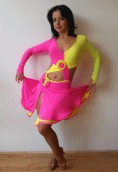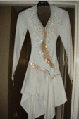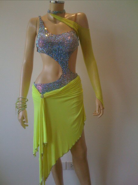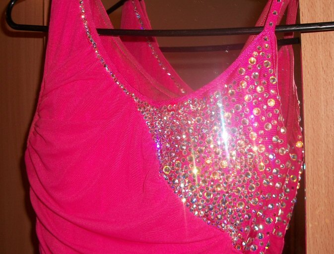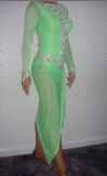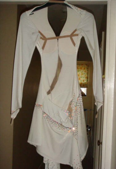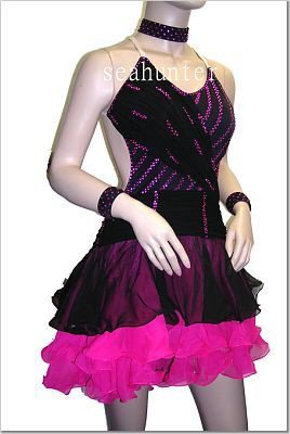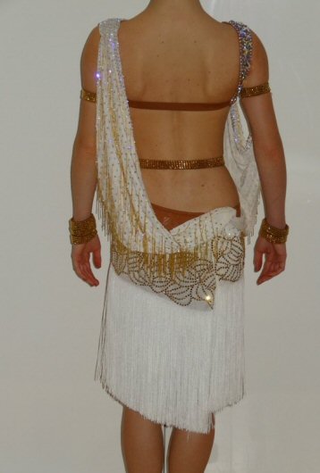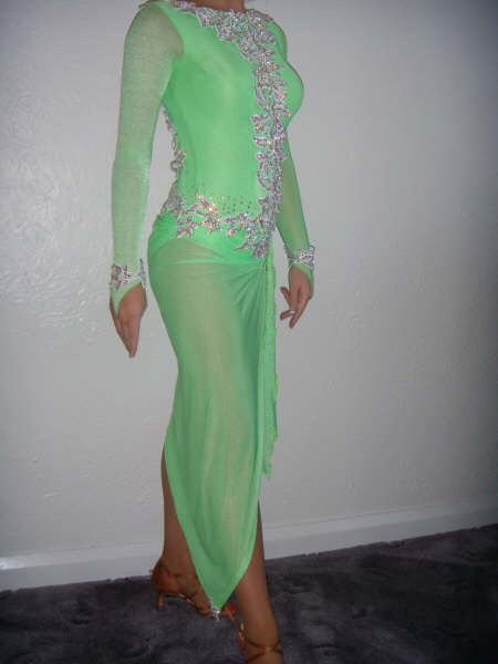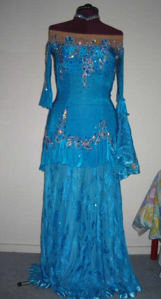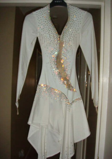 Latin is a one piece lating with a low back, strappy top and completly covered in Swarovski crystals. Has a full body suit with built in bra. Ballroom dress is the latin dress with a ballroom skirt on a lycra waist line added underneath. The skirt has 3 layers of good quality chifon. Comes with an arm band for ballroom. Looks amazing on the floor and is perfect for those quick change moments!! Would fit large size 8 to size 10 5" to 5"6 in hight (skirt is separate so can be adjusted for lenght but body suit fits max someone about 5"6). Please contact Lisa on lisa_helmling@hotmail.com or NZ time 006494425754 Latin version bigger picture | Ballroom version bigger picture | |