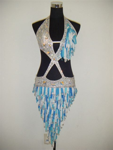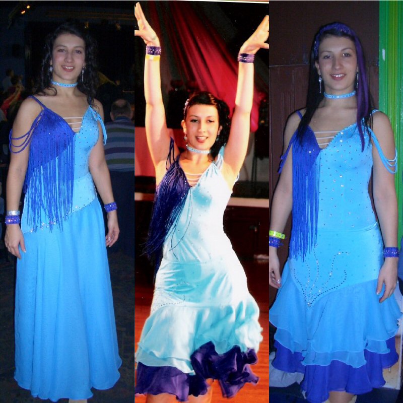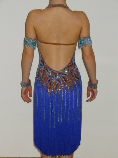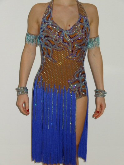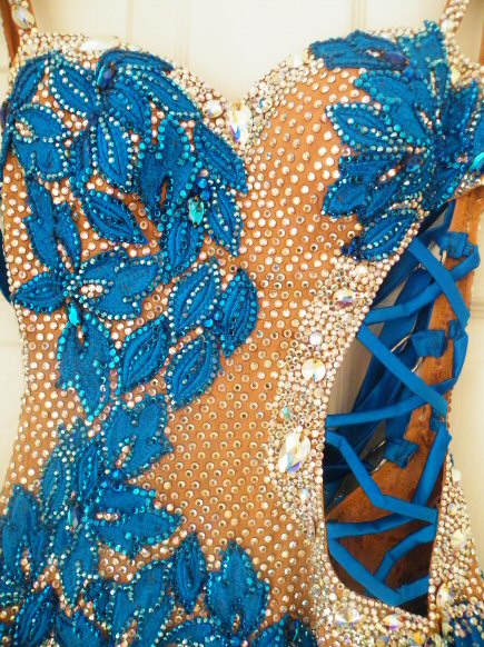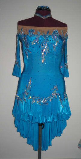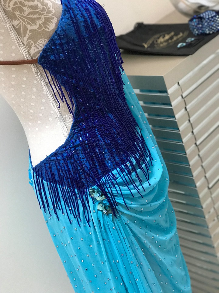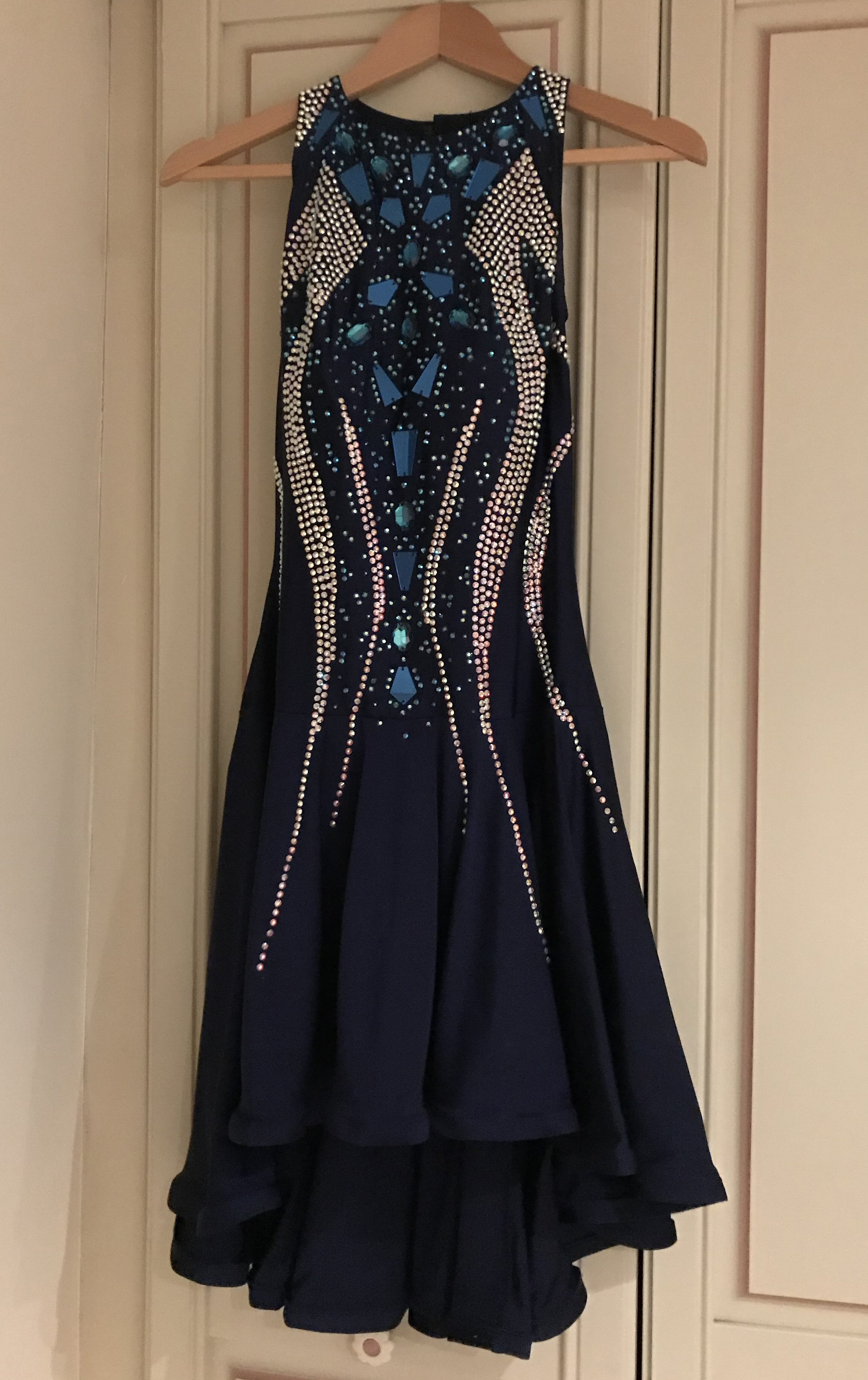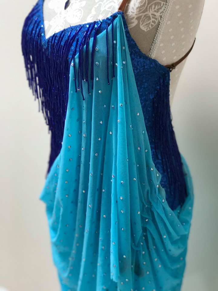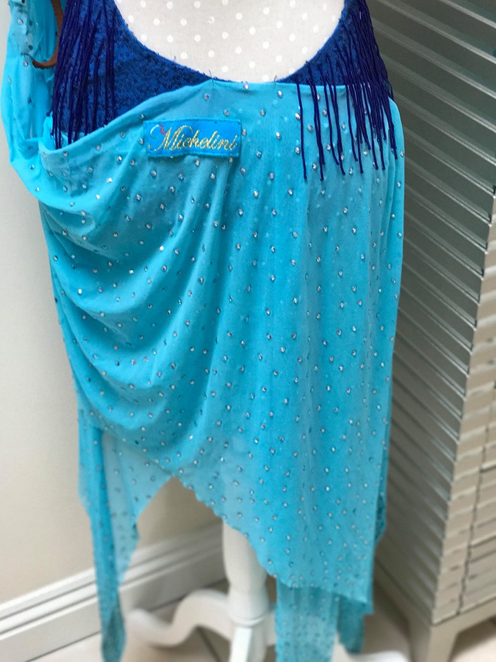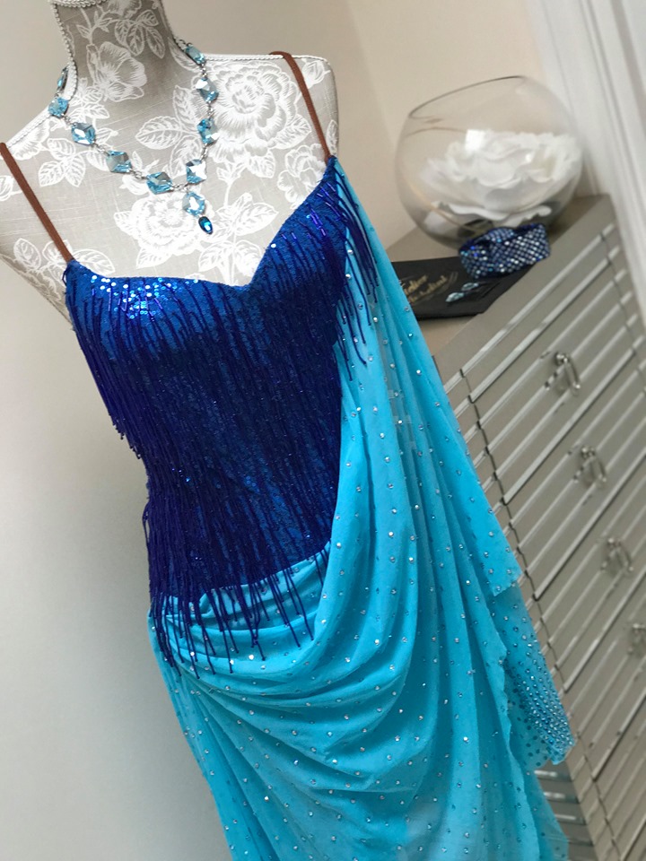 Sparkling custom-designed blue latin competition dress. Almost new, barely used.