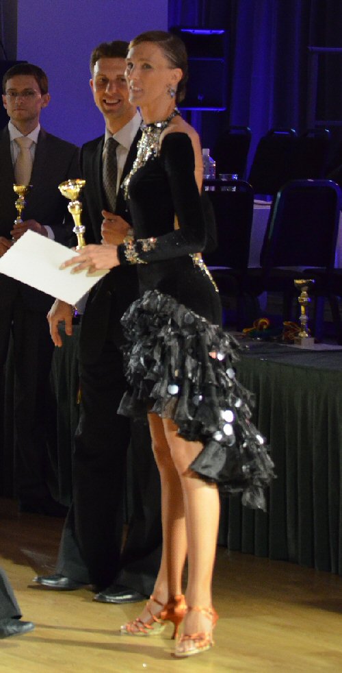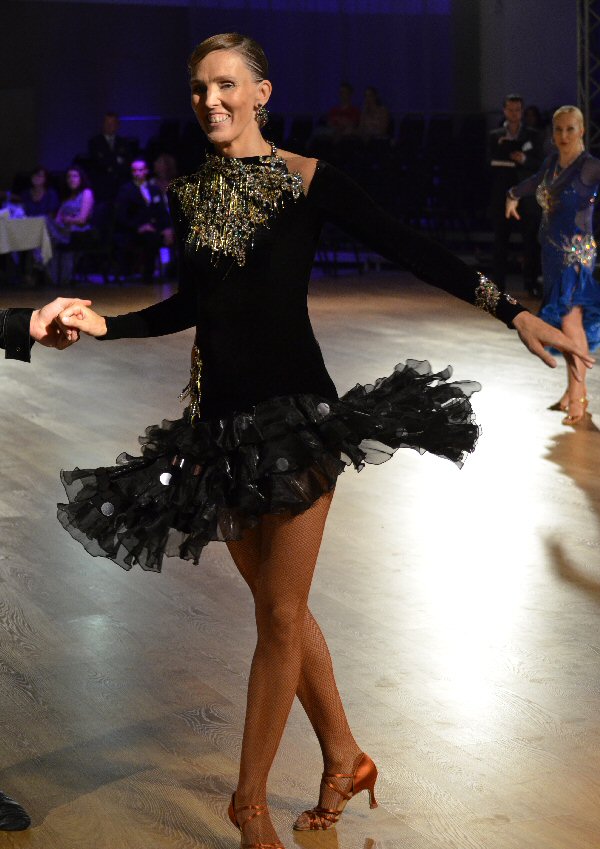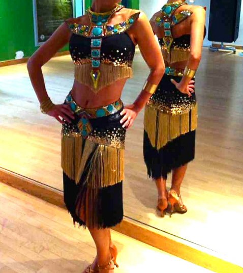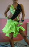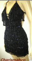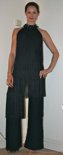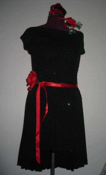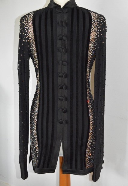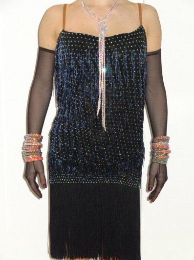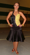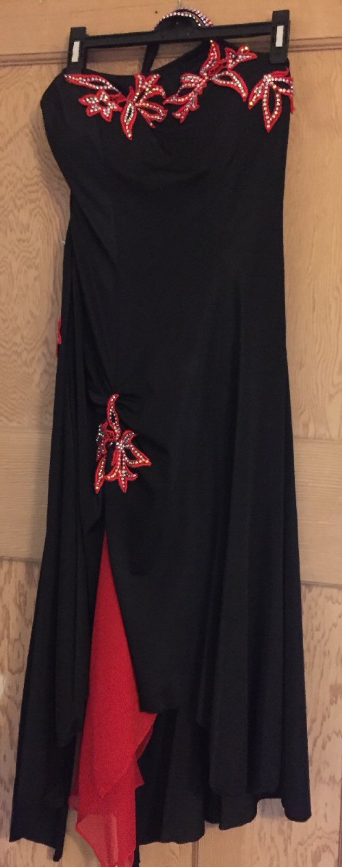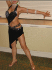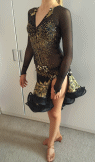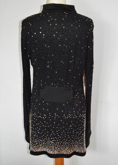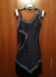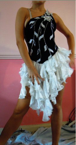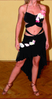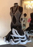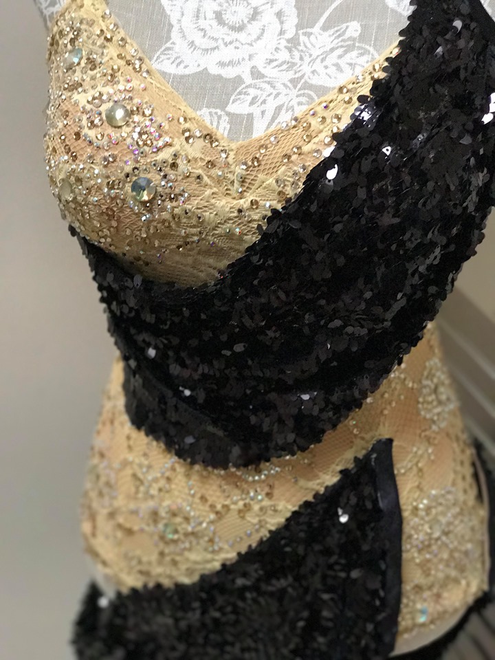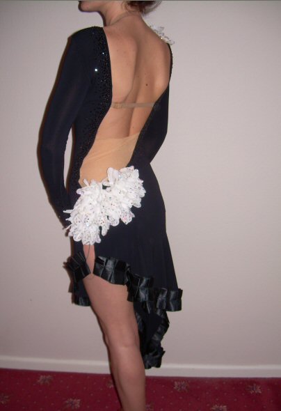 A very sleek, sexy black Latin dress, custom made by a professional dress maker.