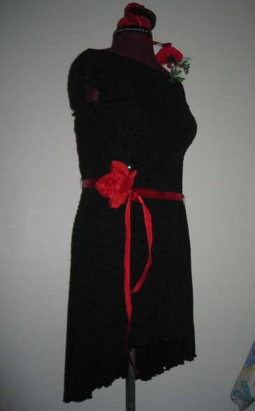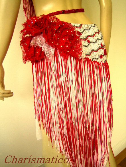 Includes red satin belt and flower, flower for hair, and red satin chocker necklace with red