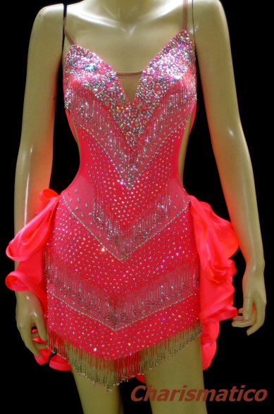 with pink and coral skirt. Whole dress covered in AB Swarovski Crystal's.