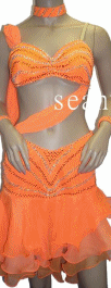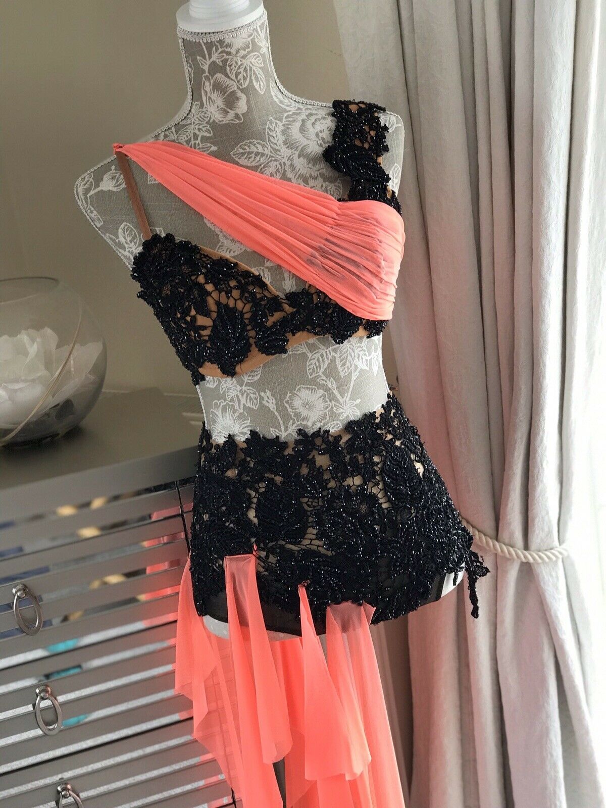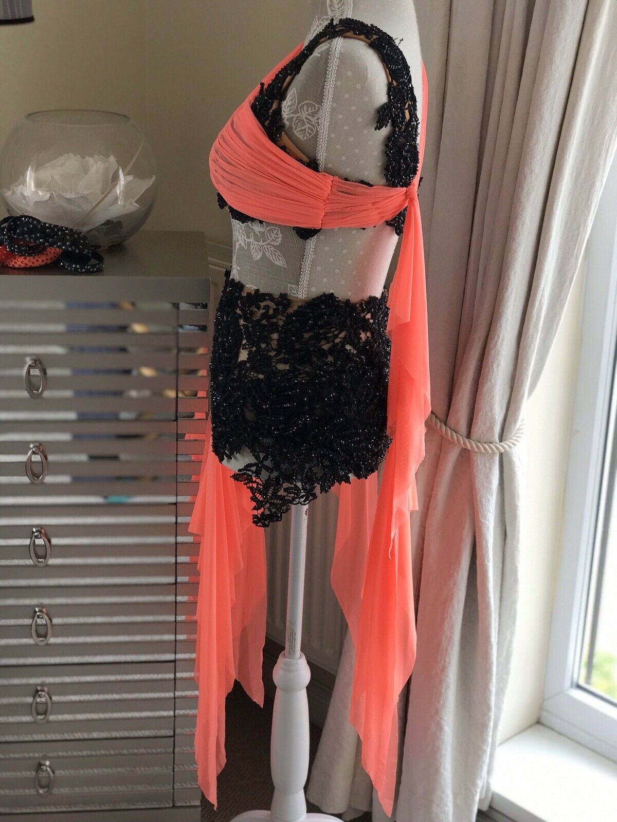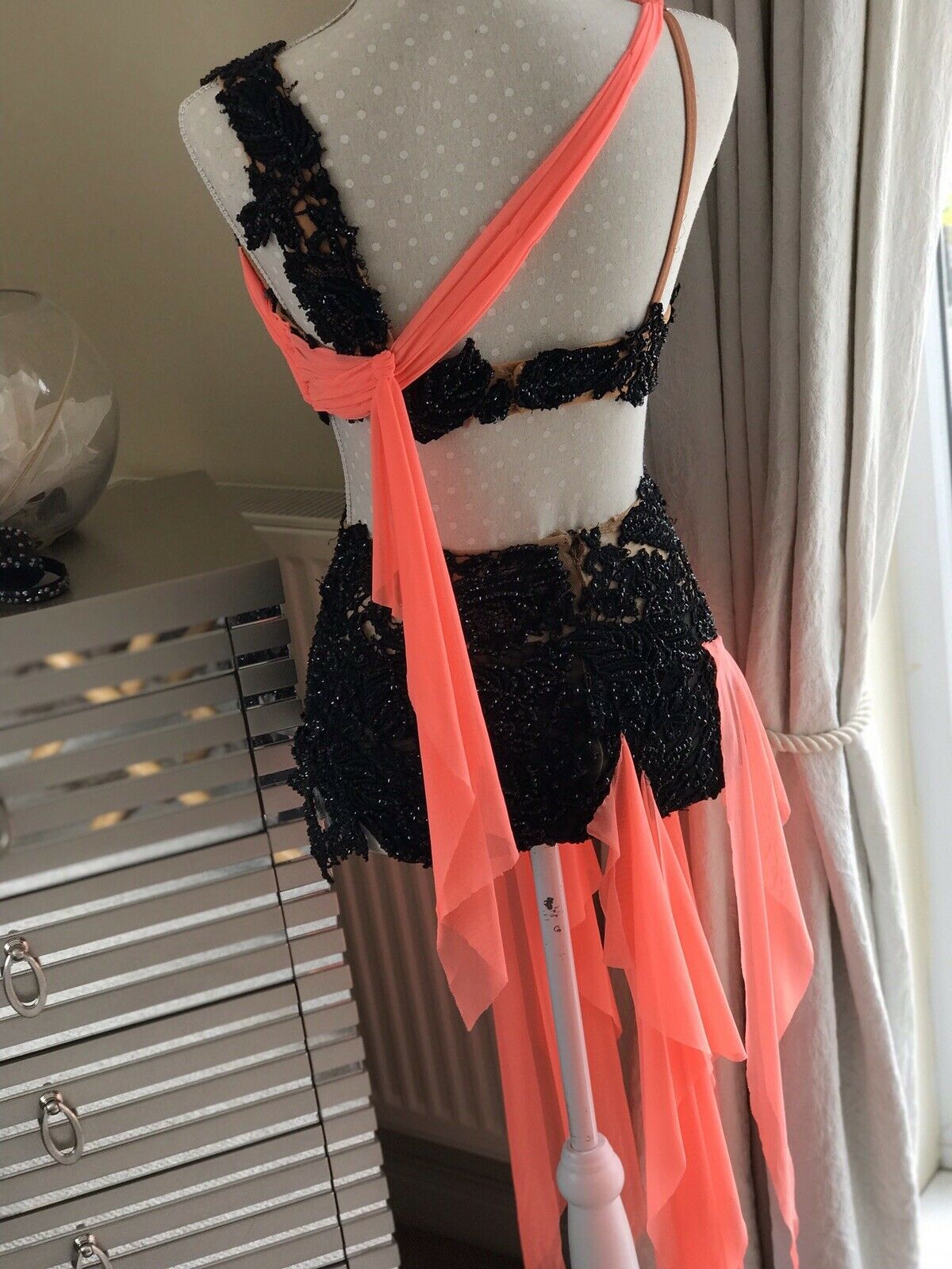 STUNNING Black & Orange Latin 2-Piece Dress Swarovski.