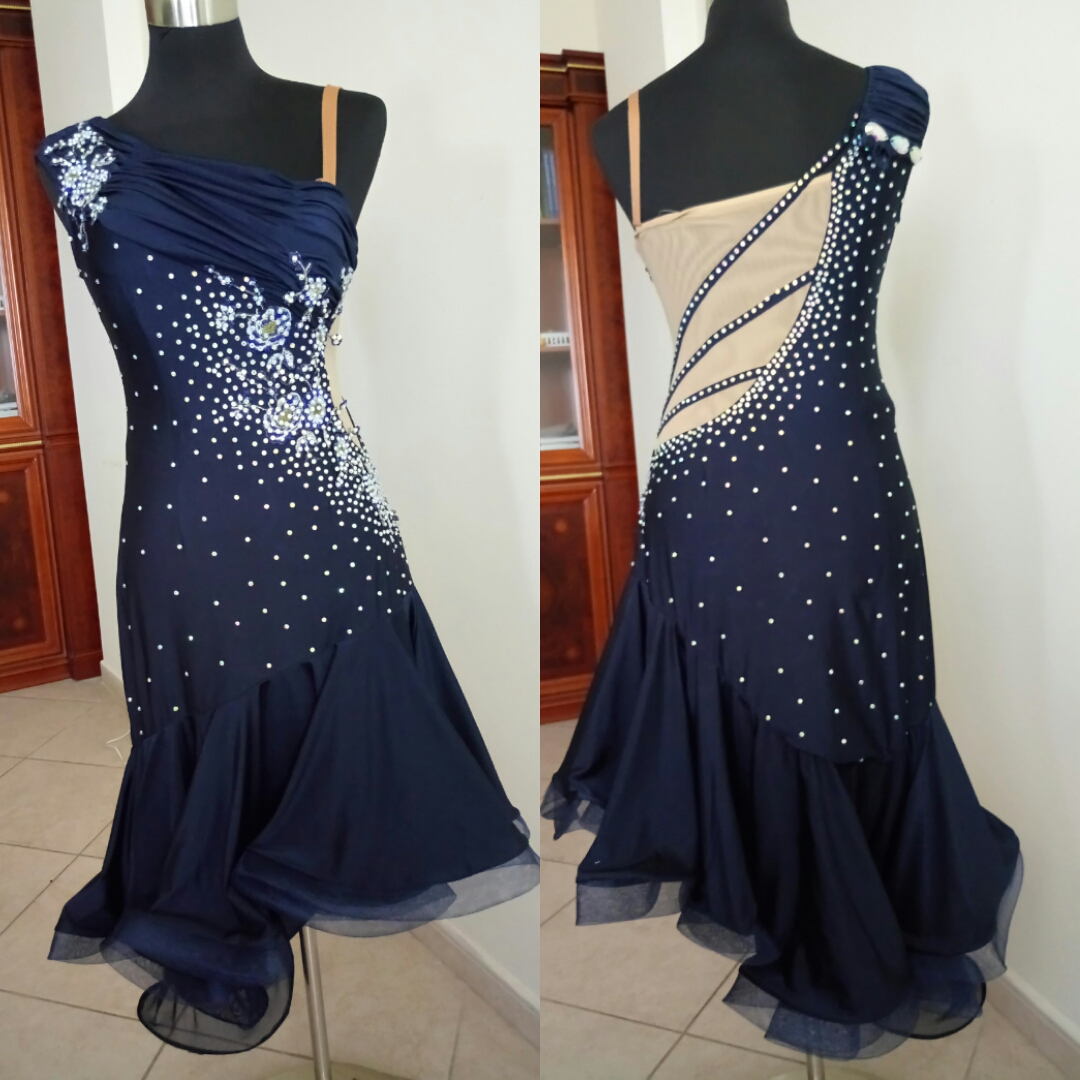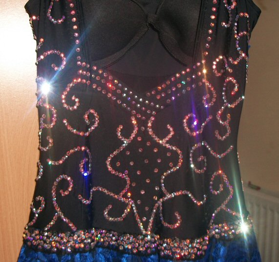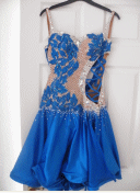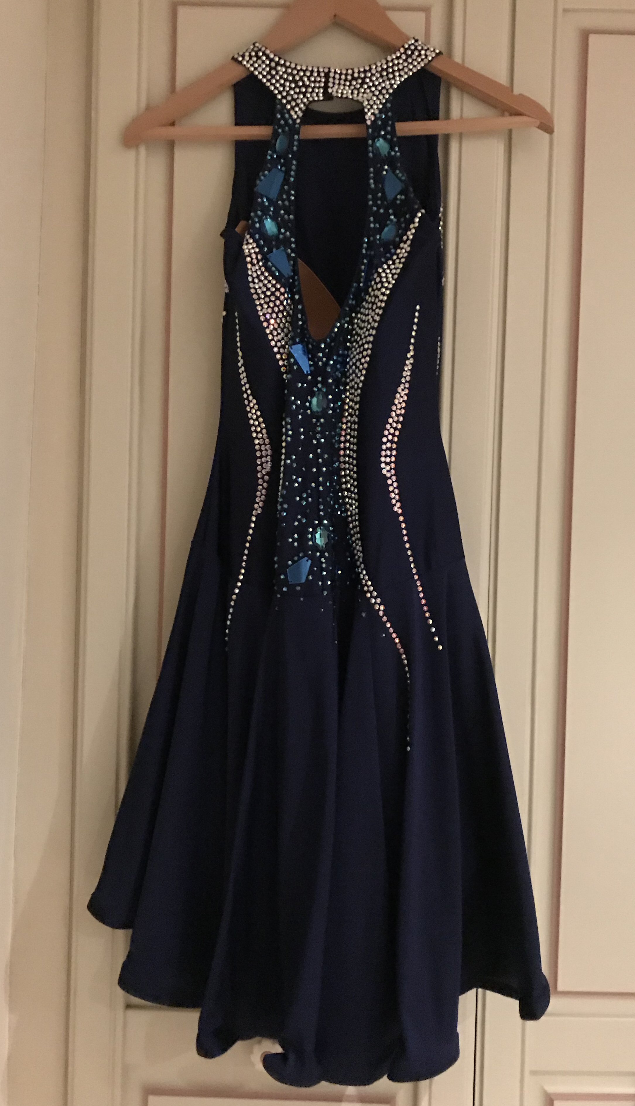 Sleek ultramarine Latin costume. Size UK 10, EU38. Worn once; intricate crystal detail.