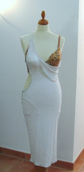 White Latin dress. Decorated with SS20 AB Swarovski stones. Old Price GBP 340.00
