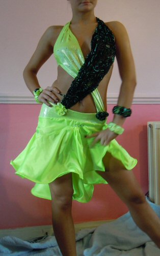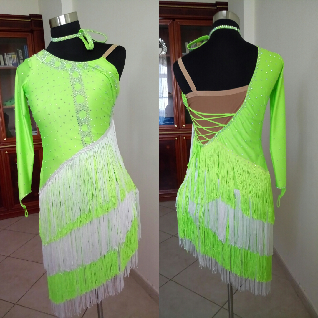 Eye-catching Neon green and white tasselled Latin costume. Size UK 10, EU38. Never worn.