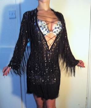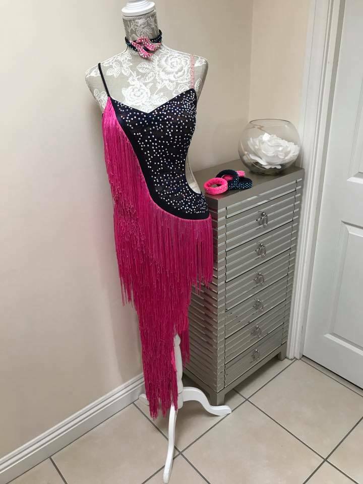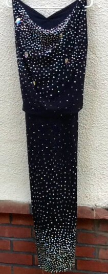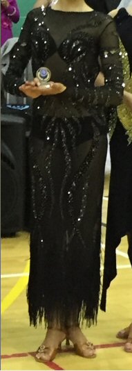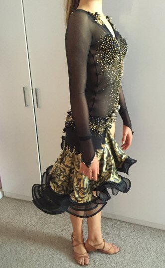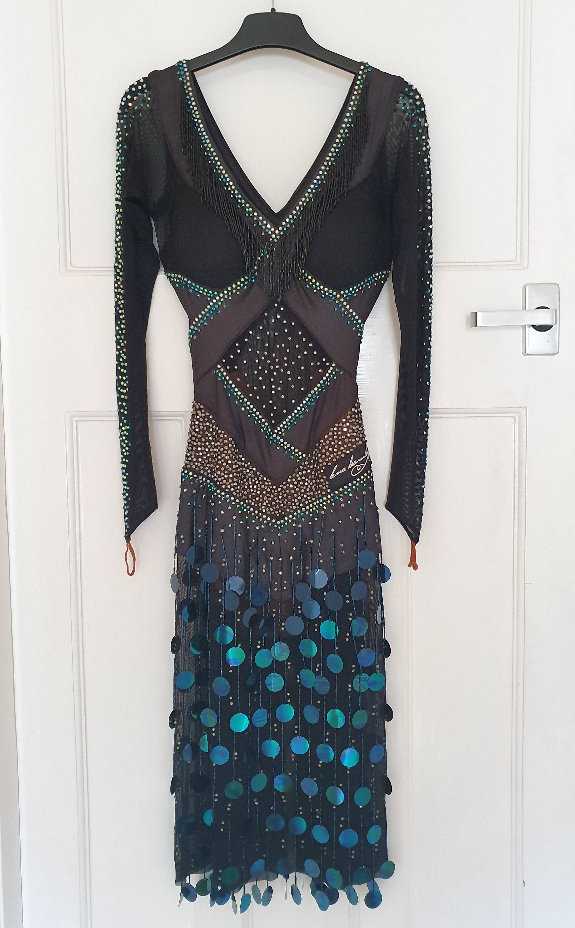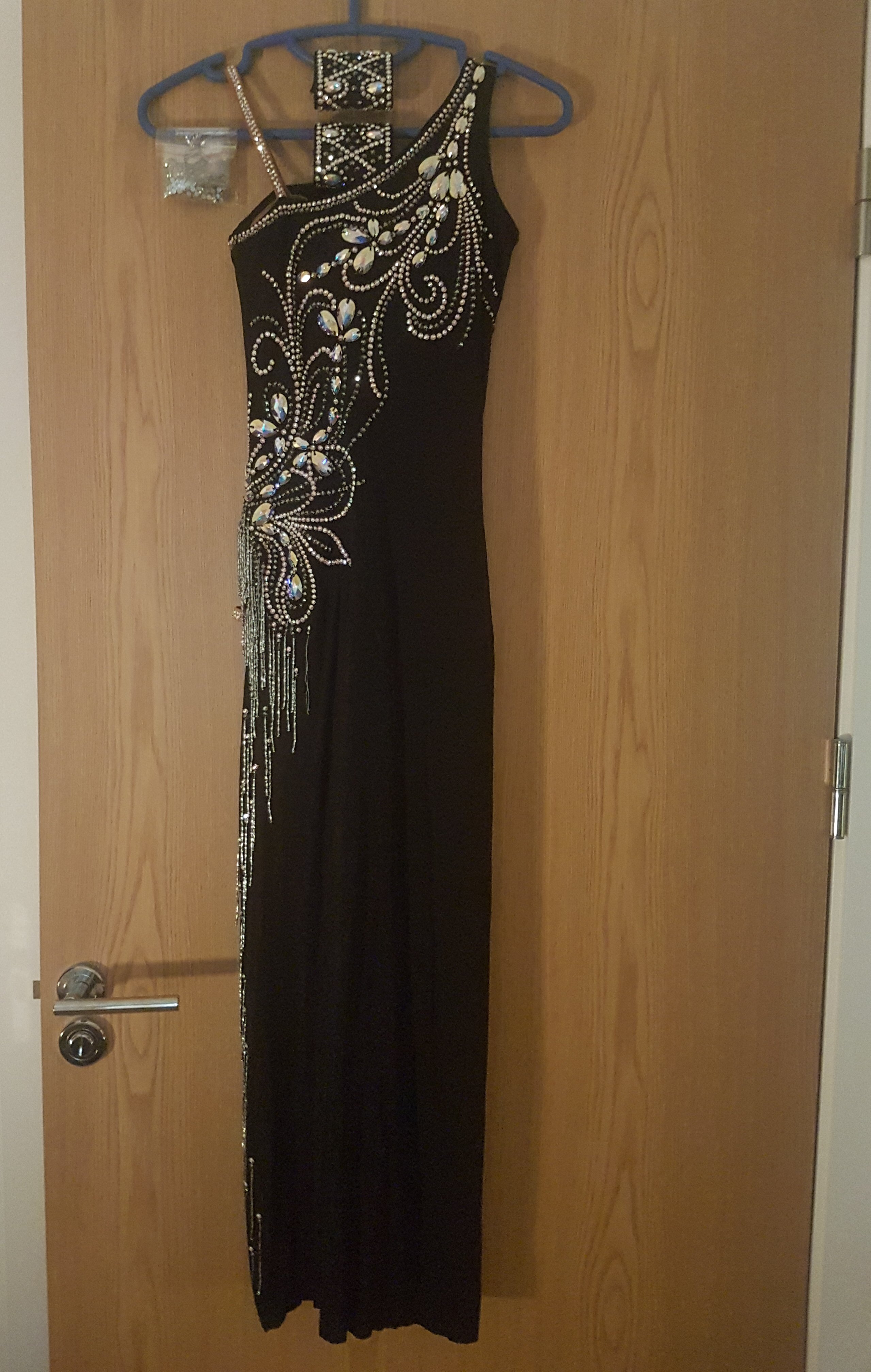 Black latin dress. Size UK 12 to small 14. $1000 USD