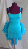Turquoise fabric latin with gorgeous leaf pattern mesh ballroom skirt with chiffon under skirt.