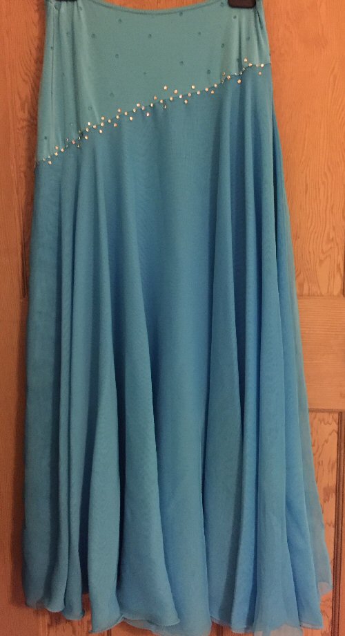 as ballroom skirt. Includes necklace, and bangle, stoned. Has small wear marks under arms.