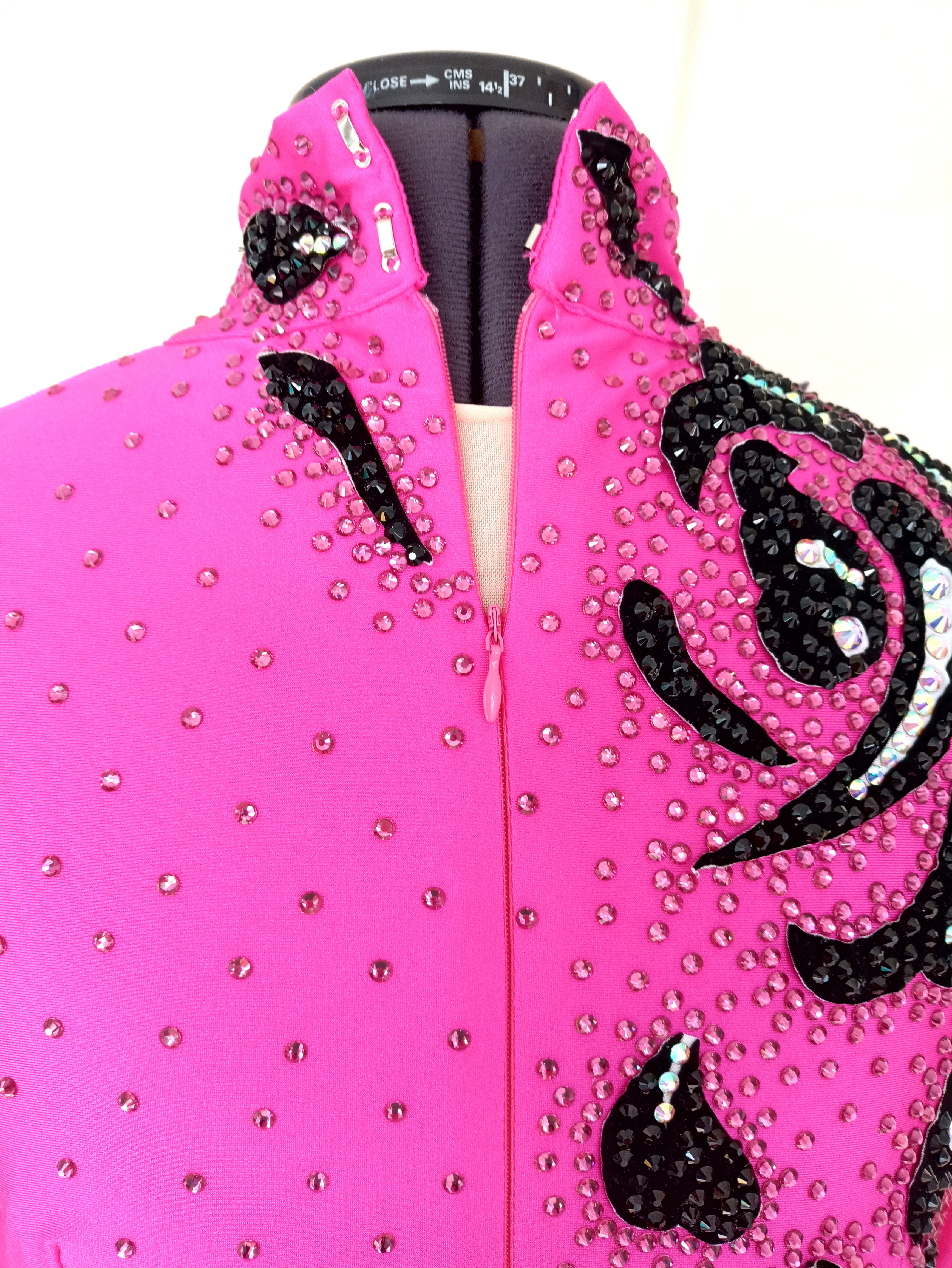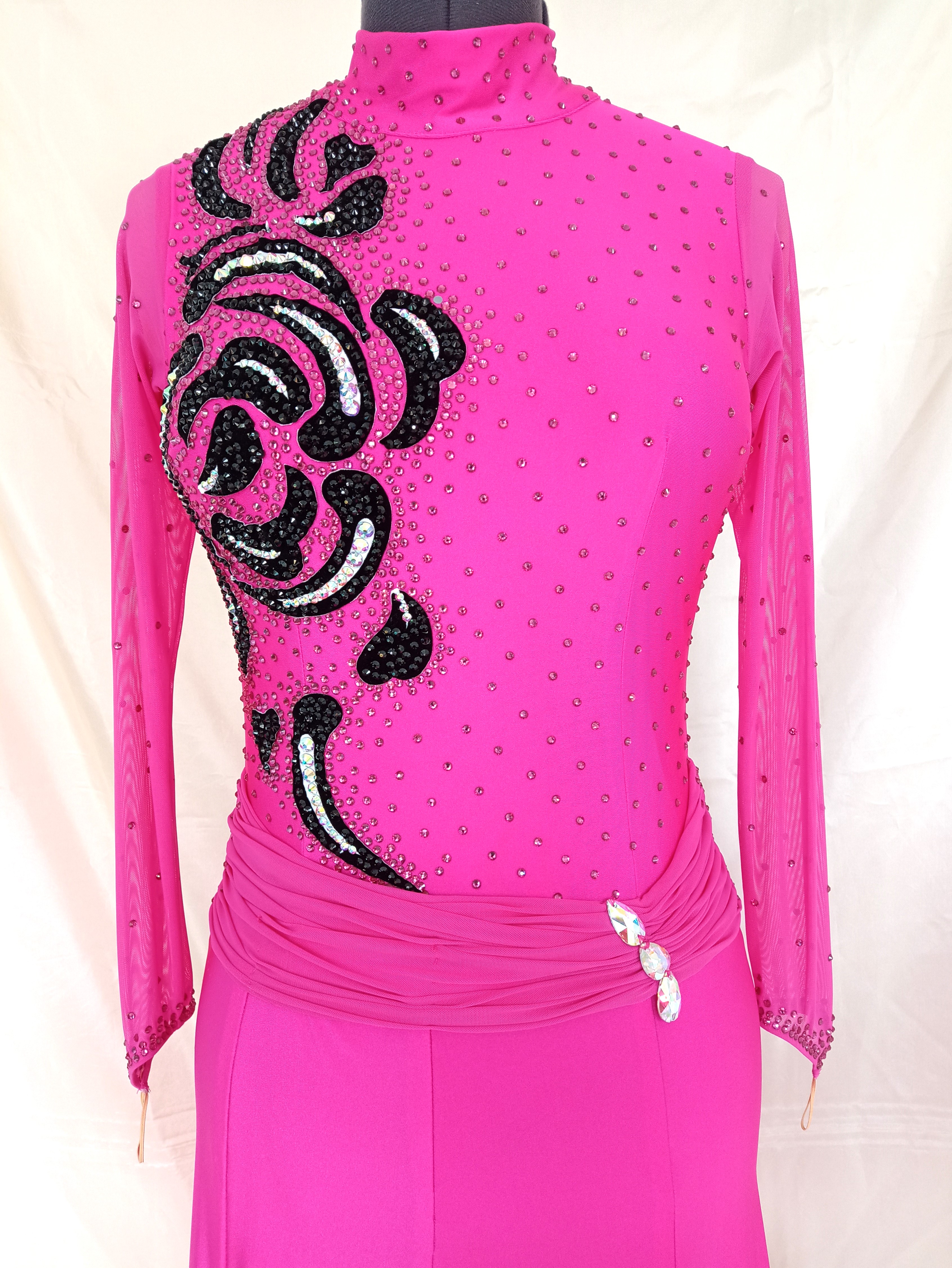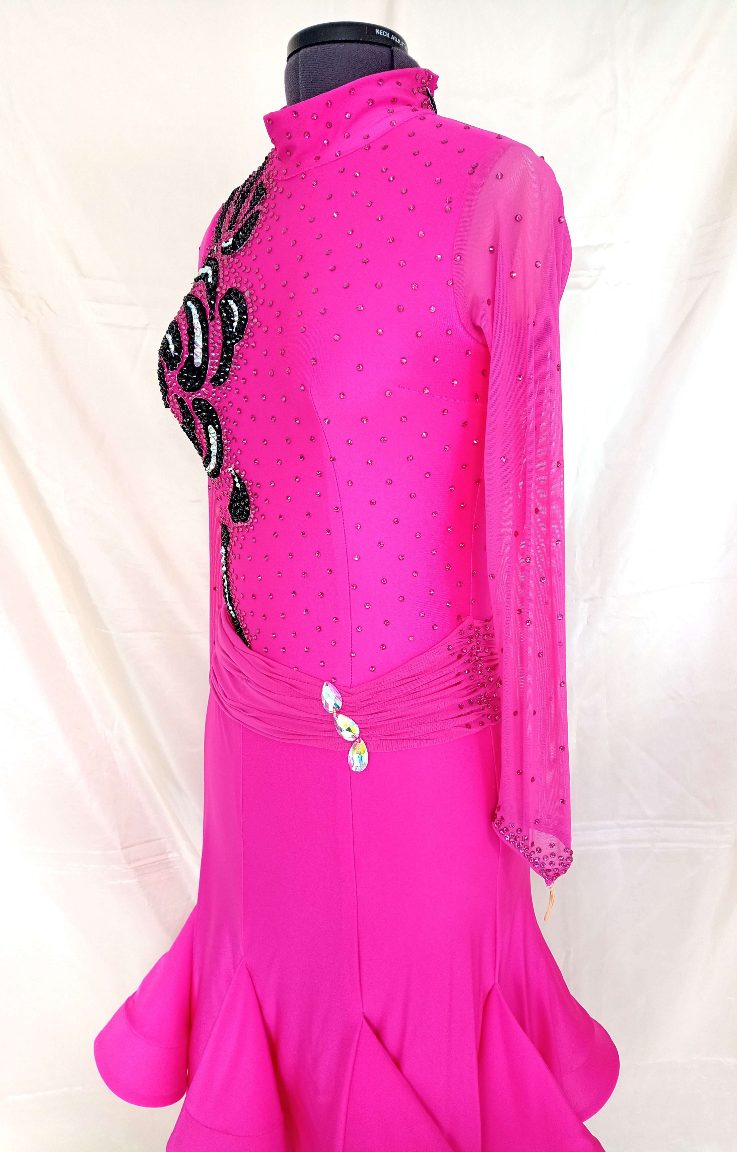 Latin competition dress in Fuchsia Pink with turtle neck collar and long sleeves size 14/16UK,