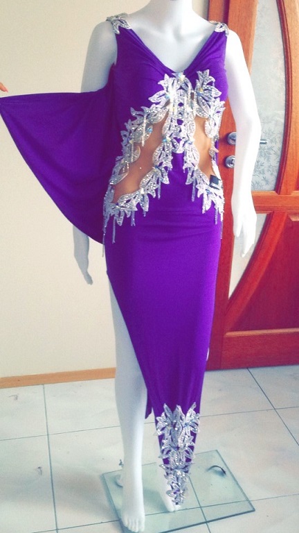Elegant purple latin dress for sale, slim fit for size XS-M and height 160-175cm.