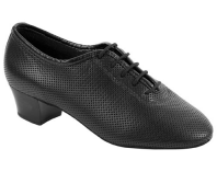 Ladies practice/teaching shoe with 1.5" cuban CUSHIONED heel. Designed for teachers and alikes, who spend many hours on the dance floor. Black leather only.