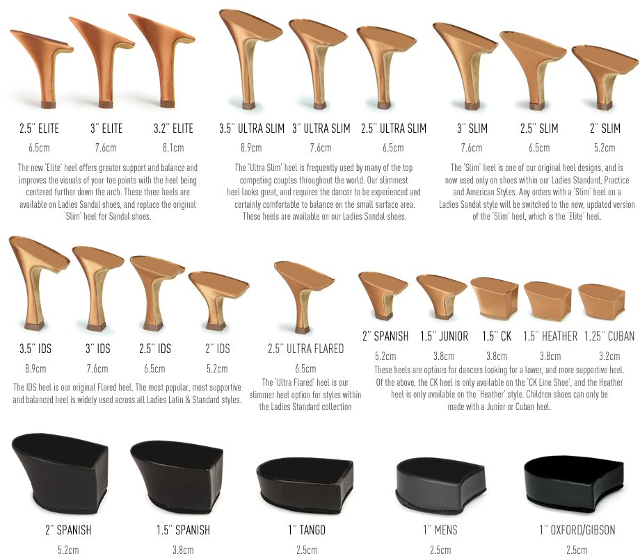 Available from stock are: Regular fitting - 2.5" IDS, 2.5" Elite and 3" Elite heels.