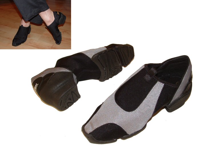 Reaktiv - Black/Silver £9.95 No laces training shoes, made of elasticated textile. This shoe feels like a glove on your foot. Split sole provides the greatest possible flexibility and 1.3" heel gives you the correct weight forward posture. This is a very tight fitting shoe, therefore we strongly recommend ordering 1 size larger than your usual size. Only sizes 9,10 available (in reality size 8 and 9). |