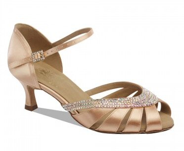 Style 1543 Flesh satin Price £125.00 excl.VAT With Genuine Swarovski Crystals. Square Diamond Hook Buckle. On 2" flare heel. |