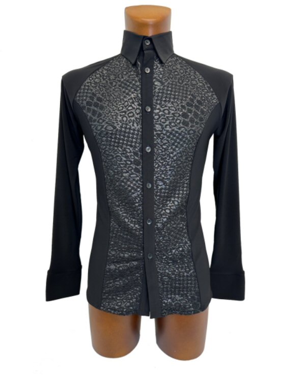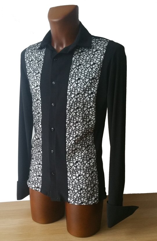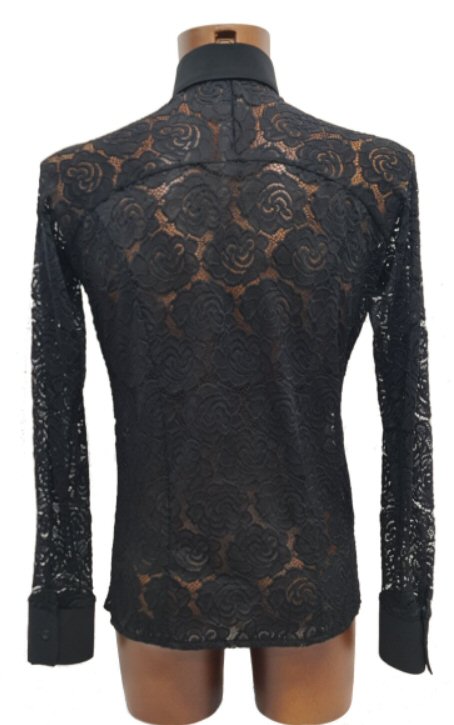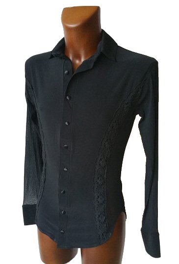 Mens Latin Shirt with mesh and lace lines