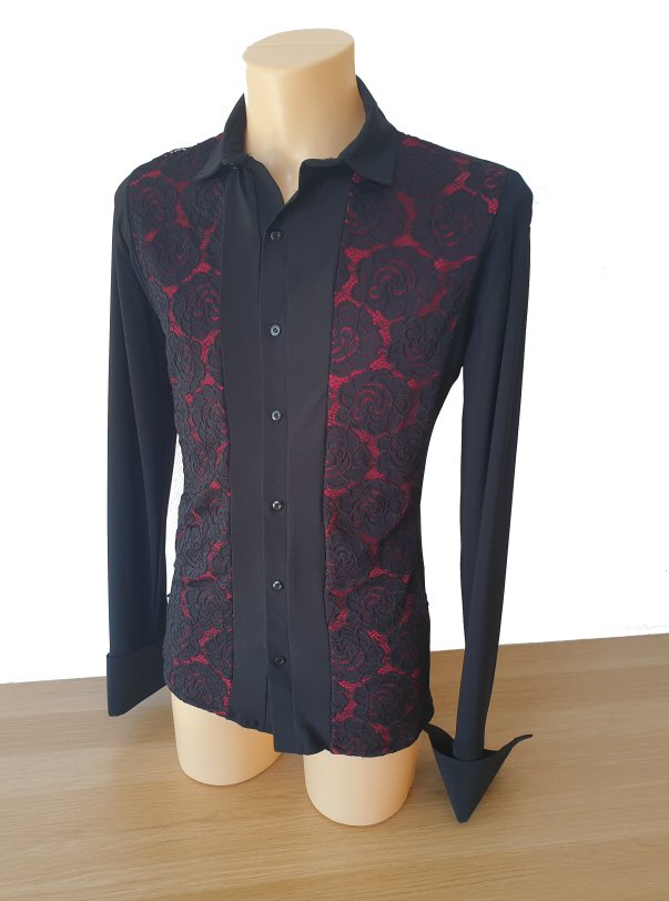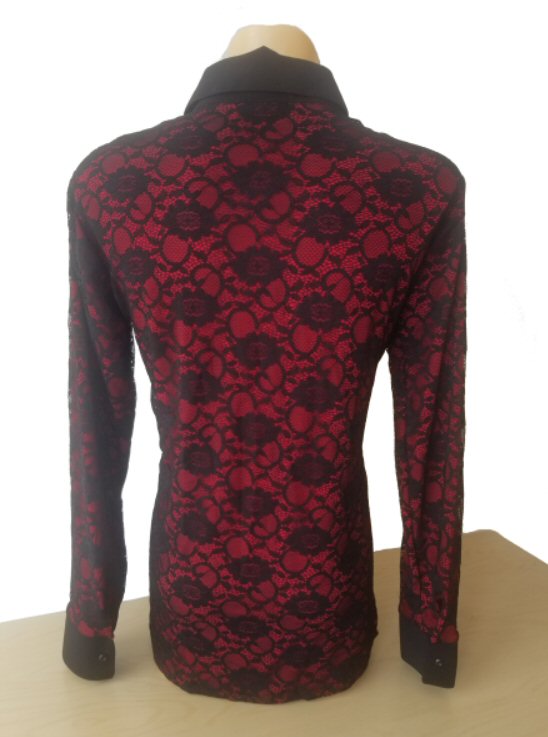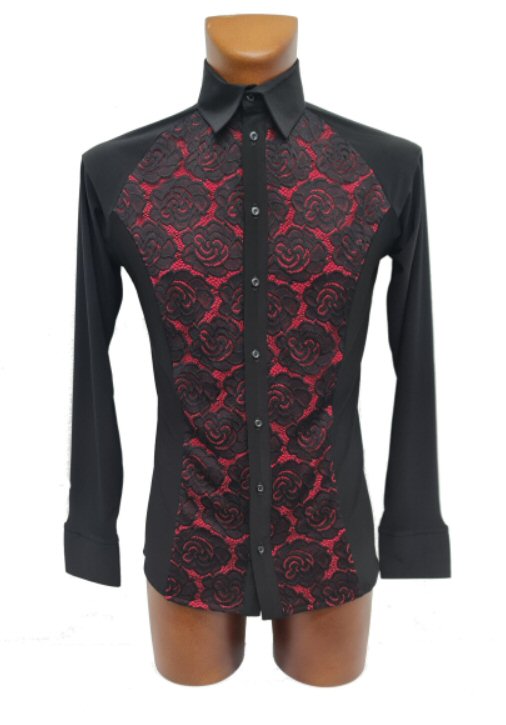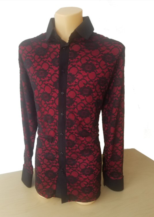 Black Lace over Red underlay mens shirt