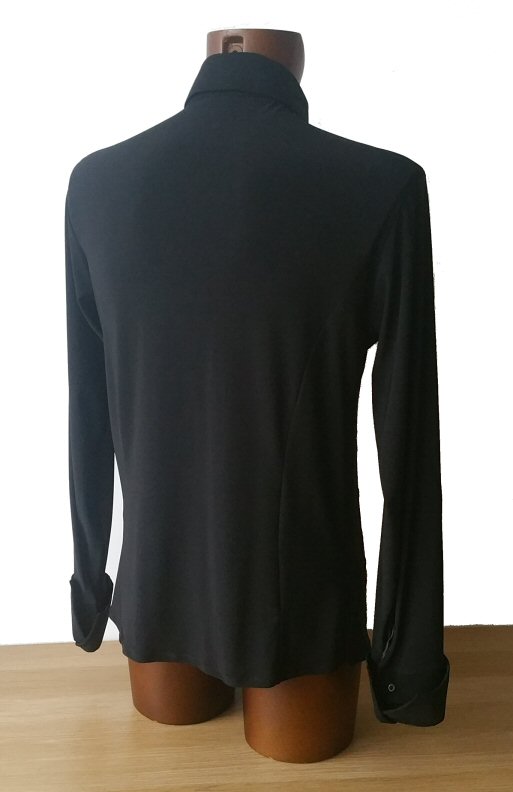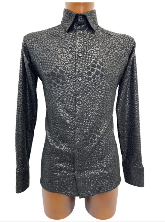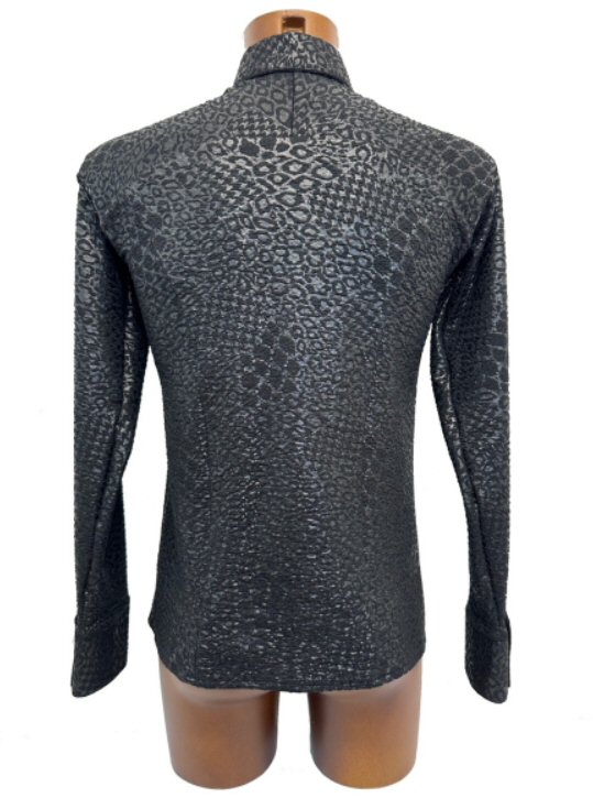 Black snake effect fabric stretchy shirt. This version is a classic shirt, that can be worn outside. Very stretchy, body friendly, easy care fabric: Machine washable, dries quickly and does not require ironing.