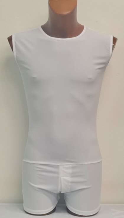 Mens stretchy vest on shorts White
