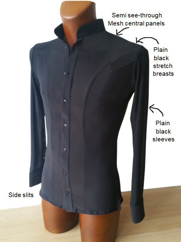 Latin competition shirt with mesh and side slits Latin competition shirt with mesh and side slits