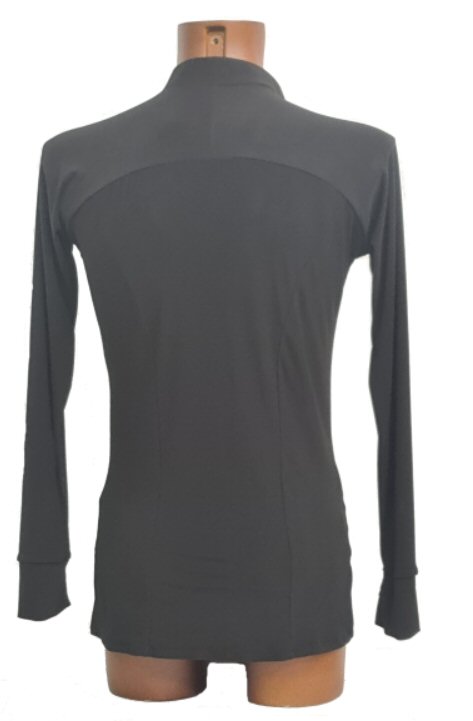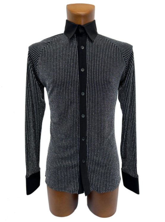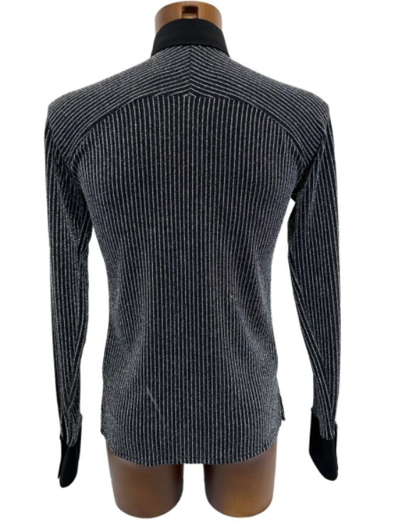 Silver pinstripe Raglan Latin shirt . Single cuff with button. Black The fabric is very stretchy, body friendly and easy care: Dries quickly and does not require ironing.