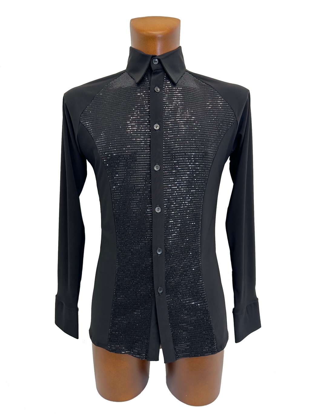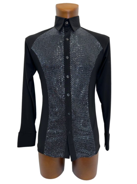 Sparkle front panels black Latin shirt