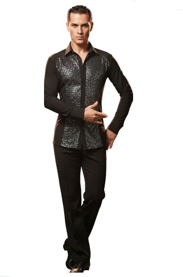 Open front mens latin shirt Mens stretchy dance top and open shirt