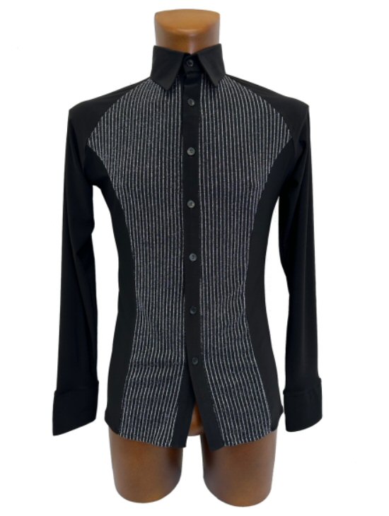 E-MT417 Black velvet stripe Raglan Latin Shirt - Price £95.00 excl.VAT