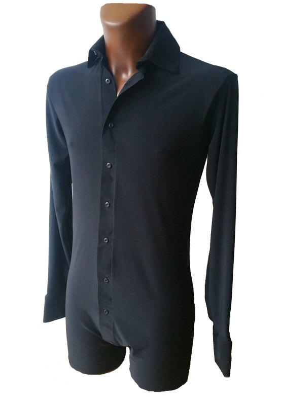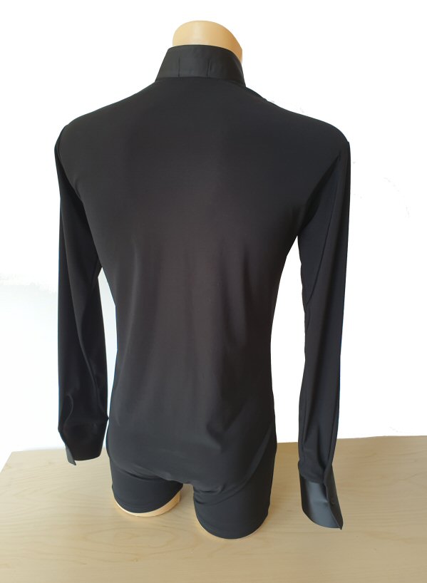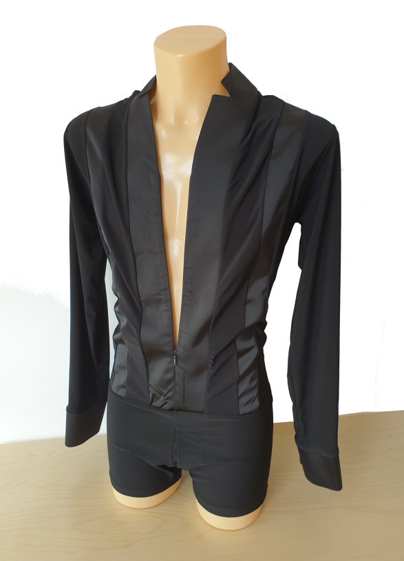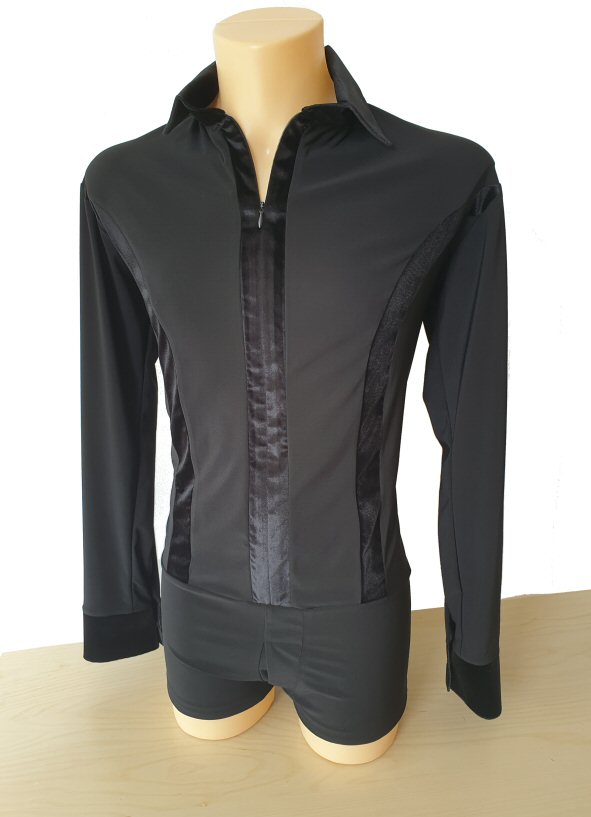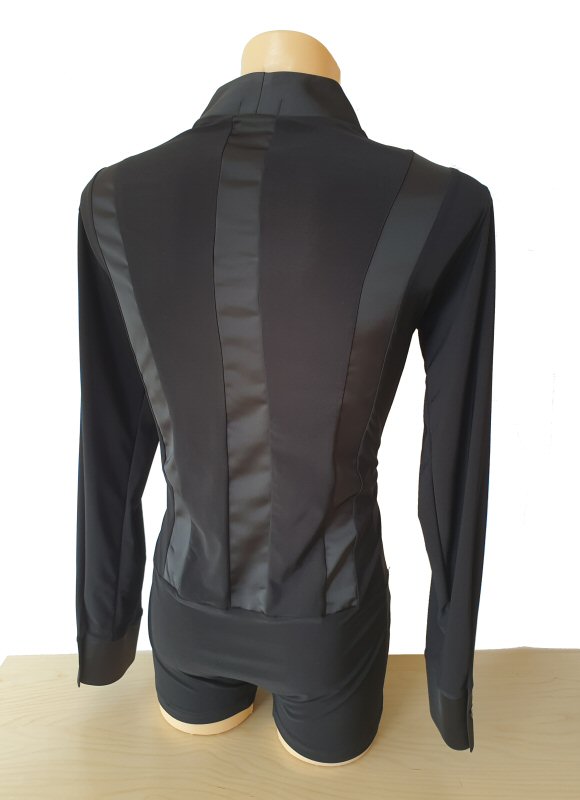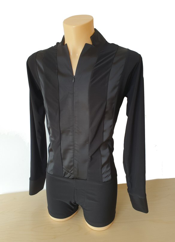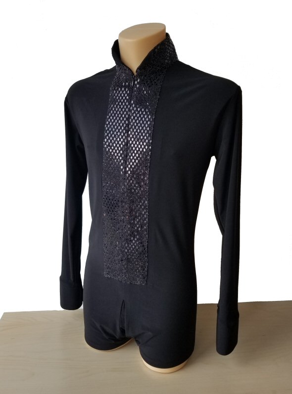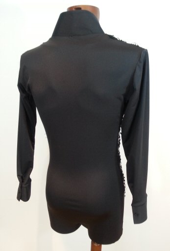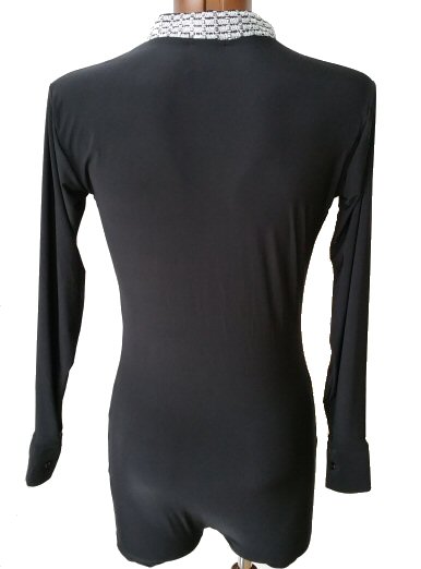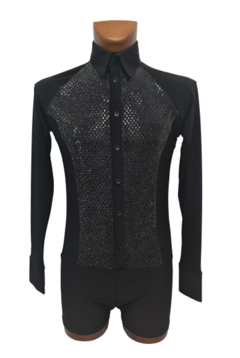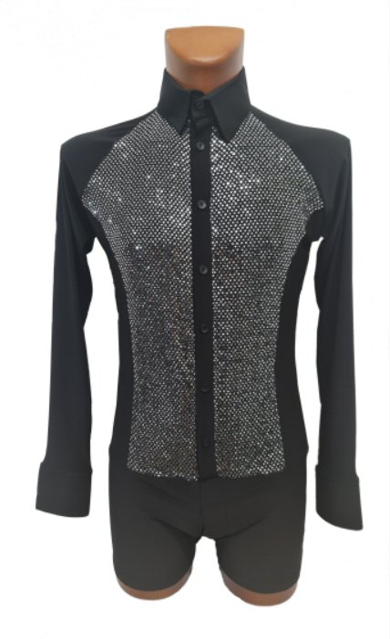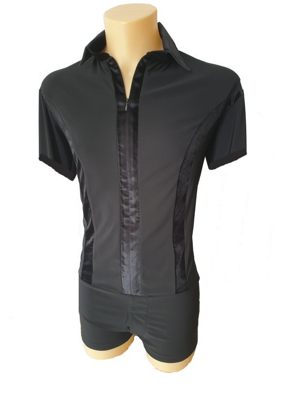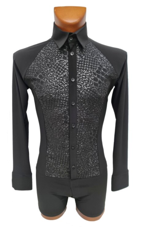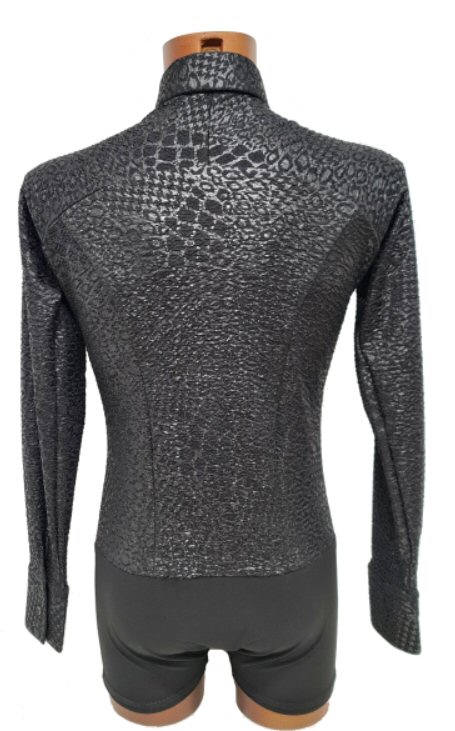 Black Snake effect Raglan cut, stretchy Latin shirt on shorts. Single cuff with button. Black. |