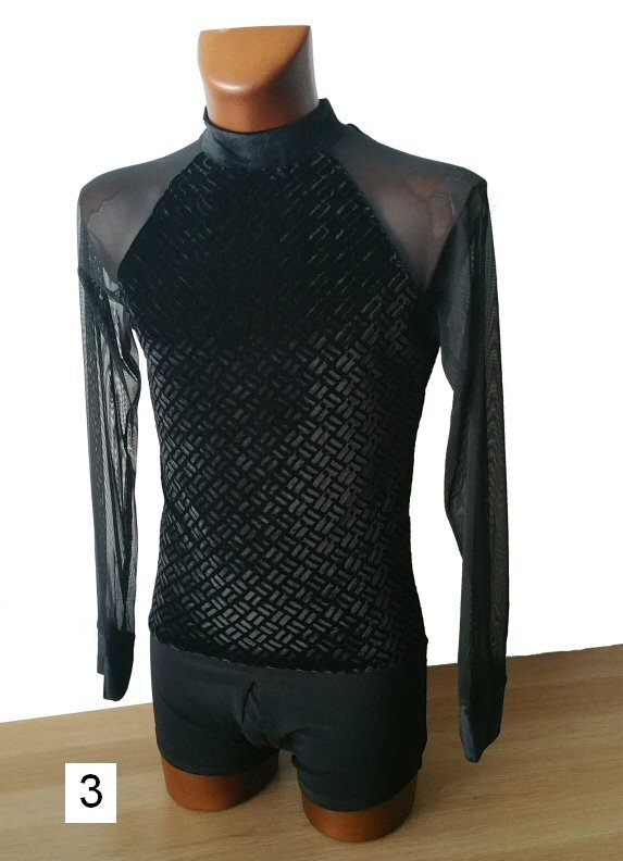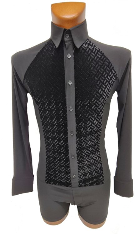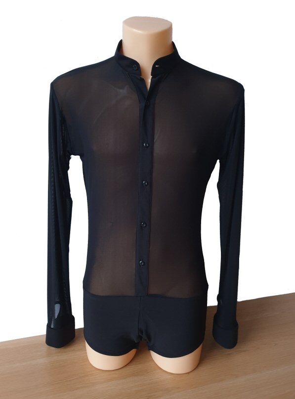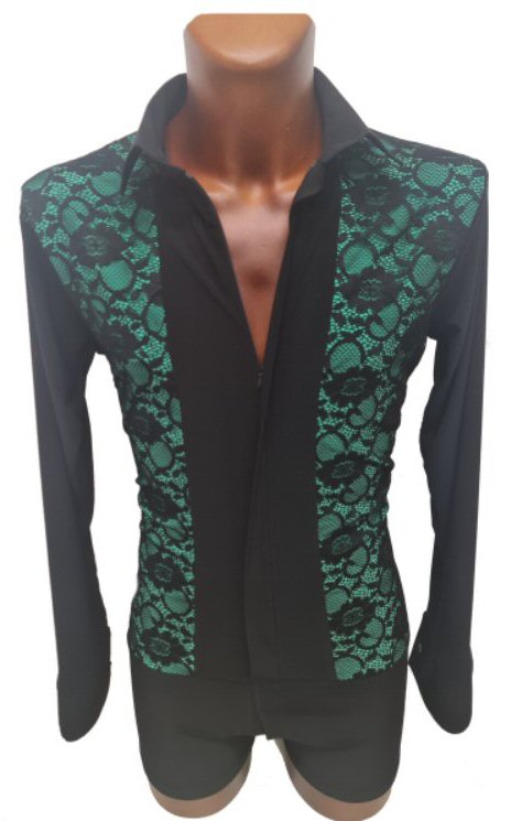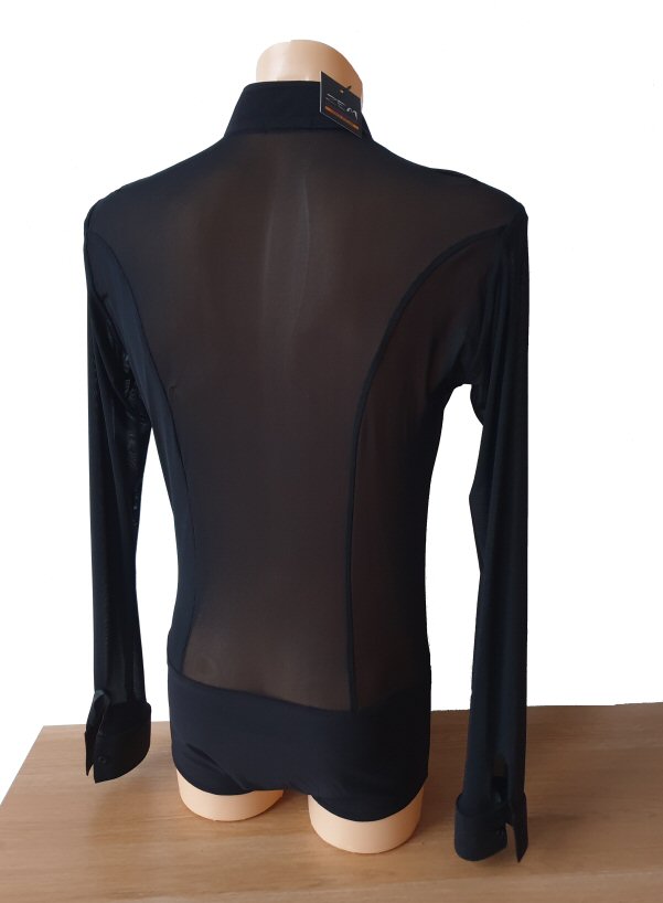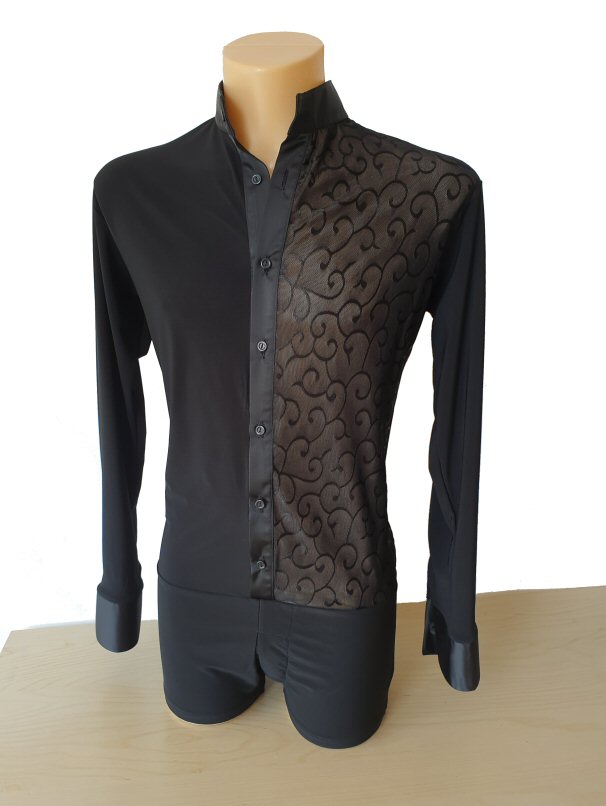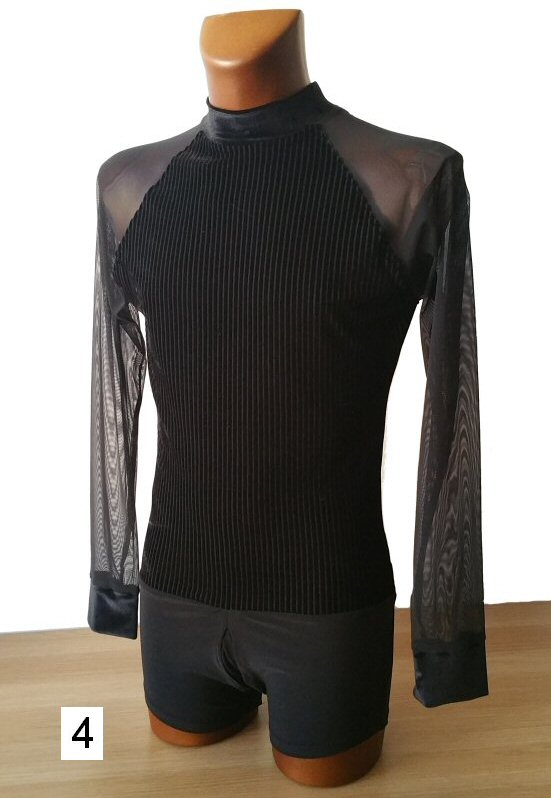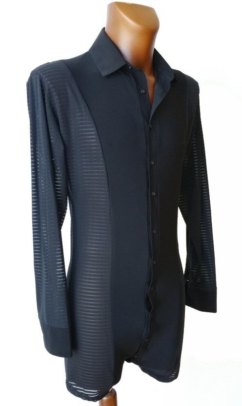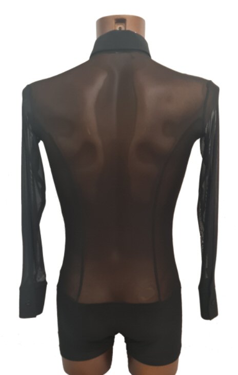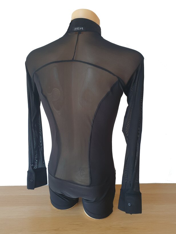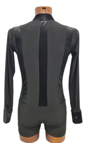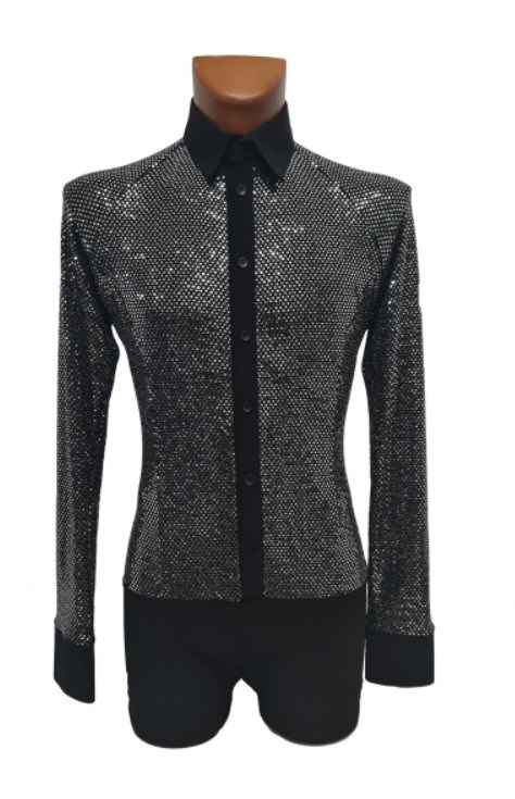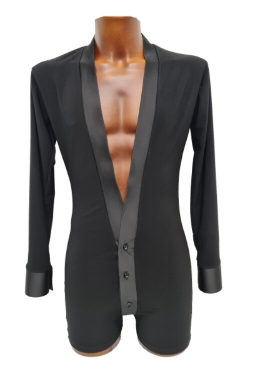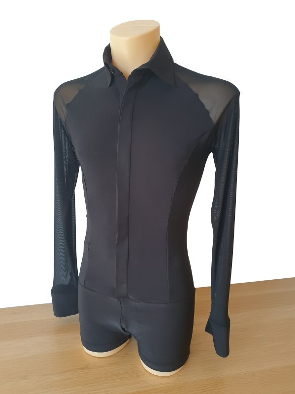 Black Snake effect Raglan cut, stretchy Latin shirt on shorts. Single cuff with button. Black. |