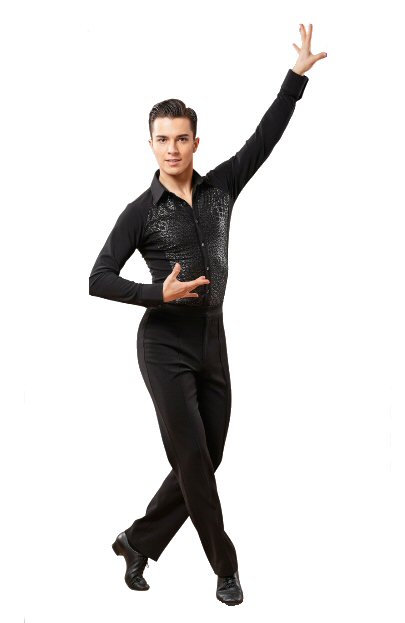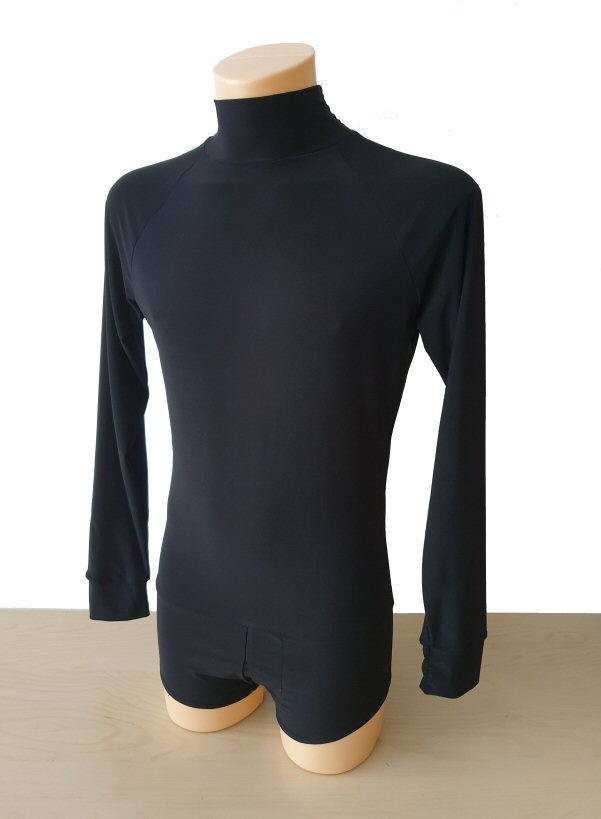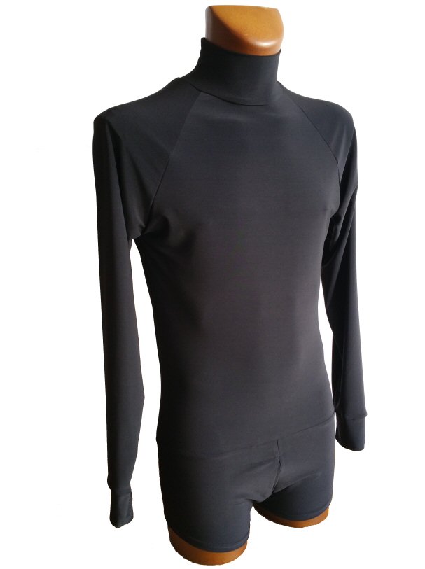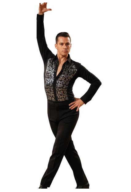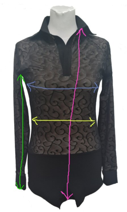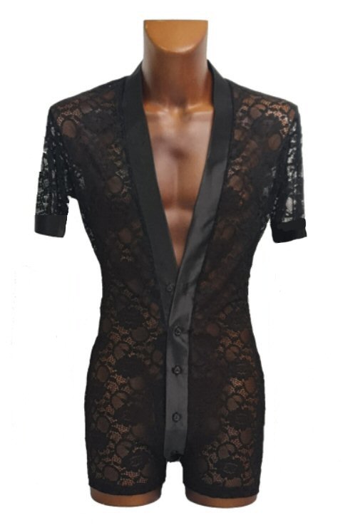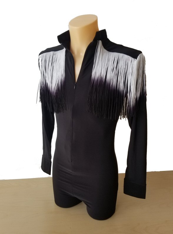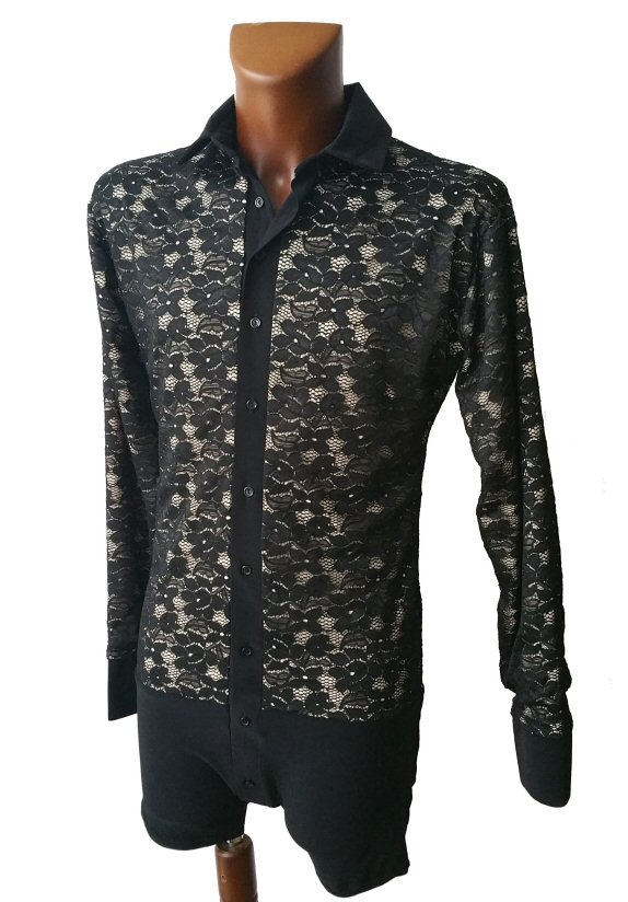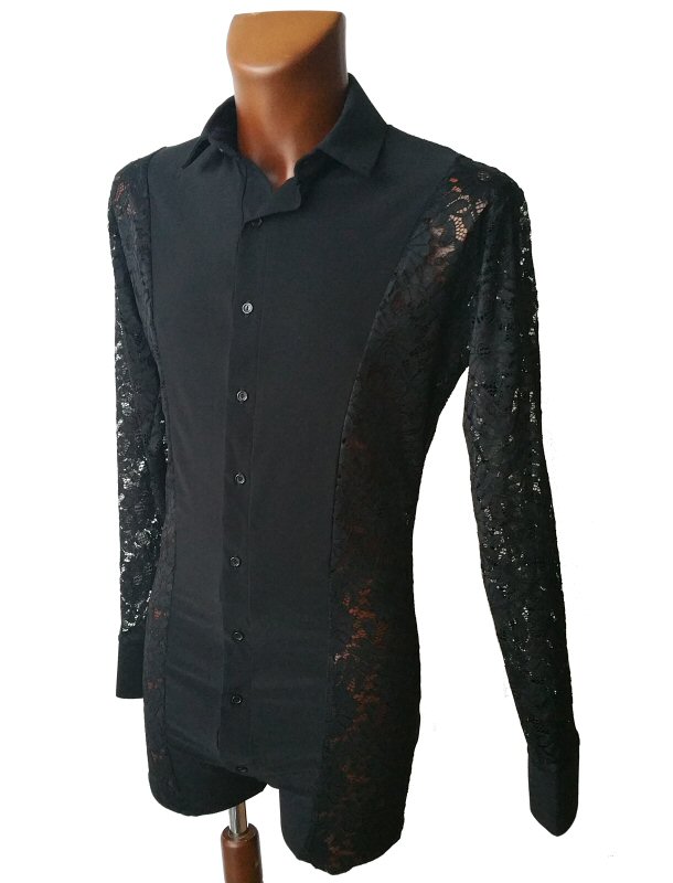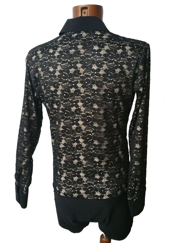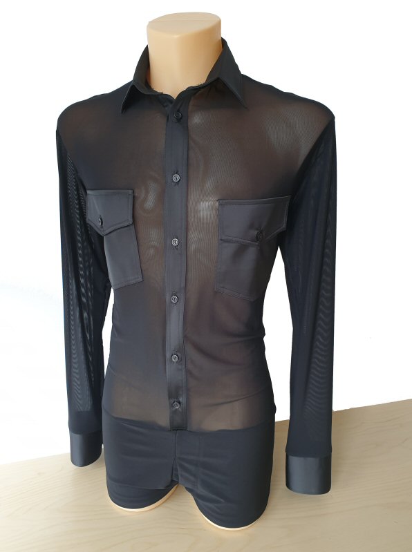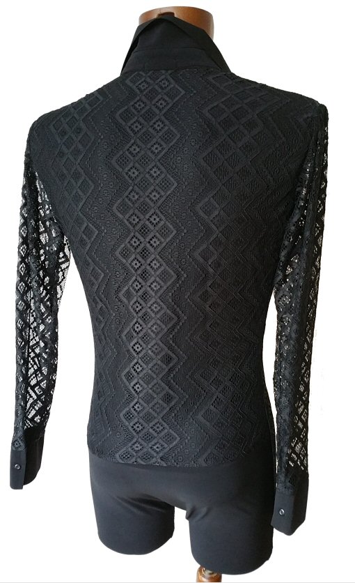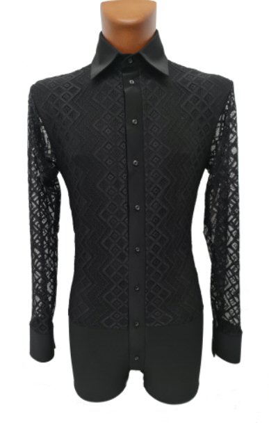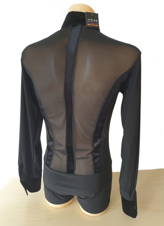 Black Snake effect Raglan cut, stretchy Latin shirt on shorts. Single cuff with button. Black. |