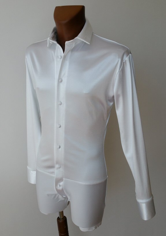 This latin body shirt comes with satin collar, cuffs and two breast pockets. |