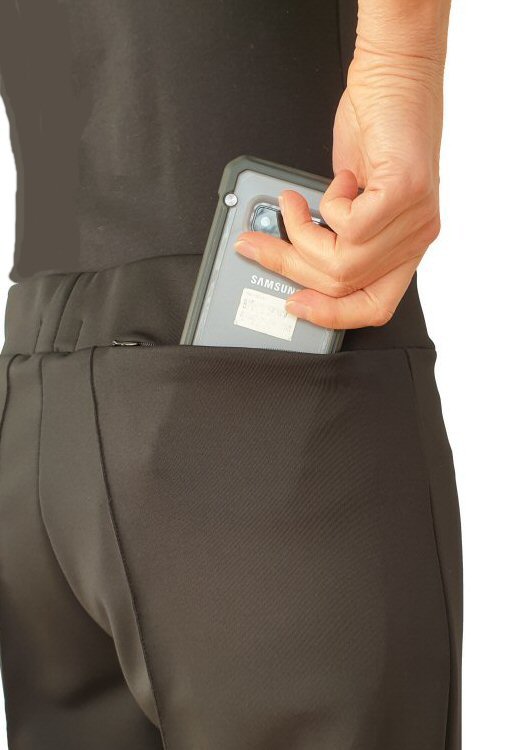 Heavenly stretchy tapered mens trousers side pockets closed Heavenly stretchy tapered mens trousers with zipped phone pocket