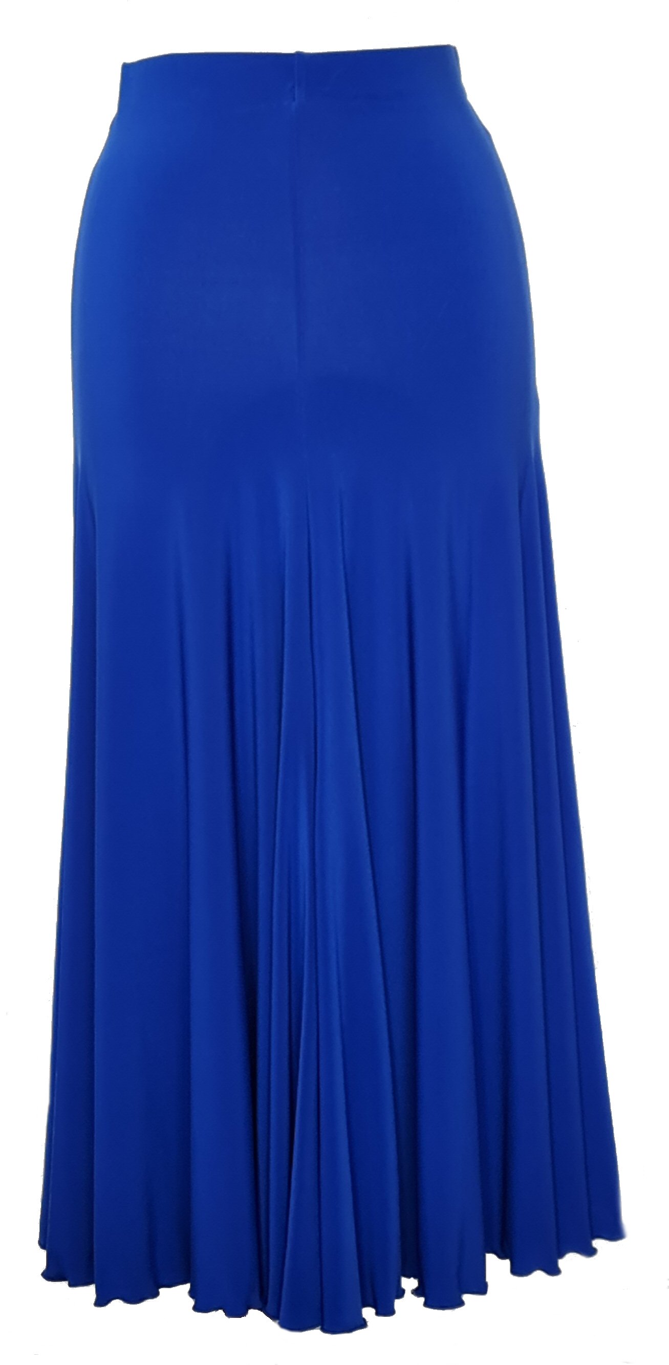 Eight panel ballroom skirt. Each panels comes with an additional curved shape frill, which creates a very "full" look. Made in stretch crepe with elasticated waist.