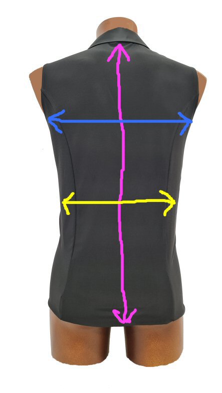 Typical length (Pink line) measured on the back from nape bone (or top of shoulder) to hem 23 inch (59cm).