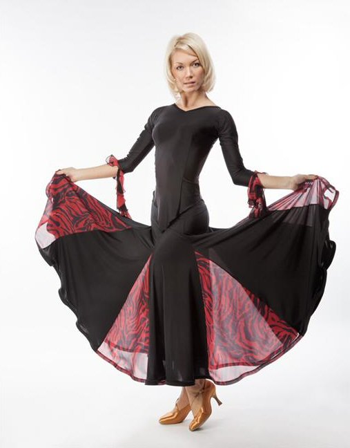 Ladies Ballroom panel skirt. Available in Black/Red flowers georgette and Black/Fantasy pattern. Matches Rina top ( see item above). |