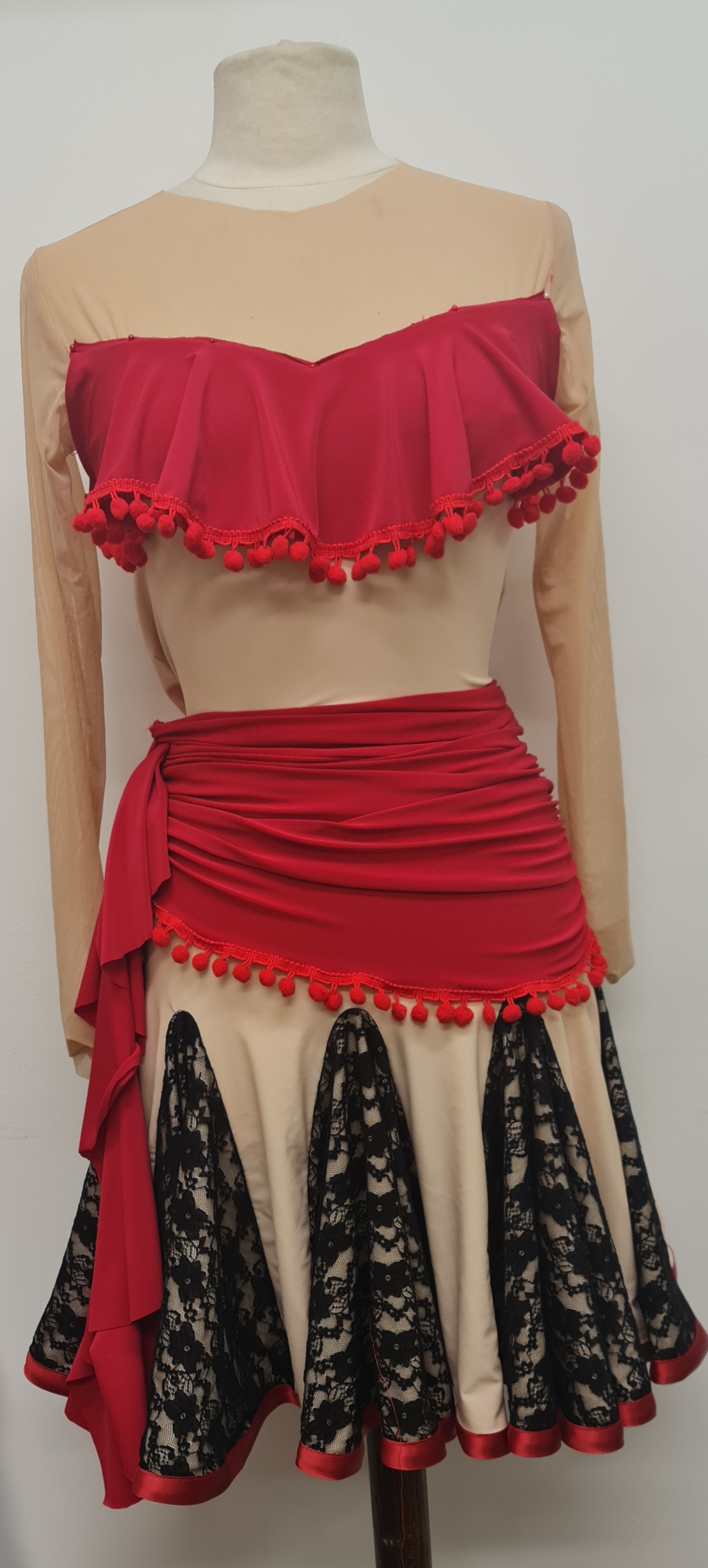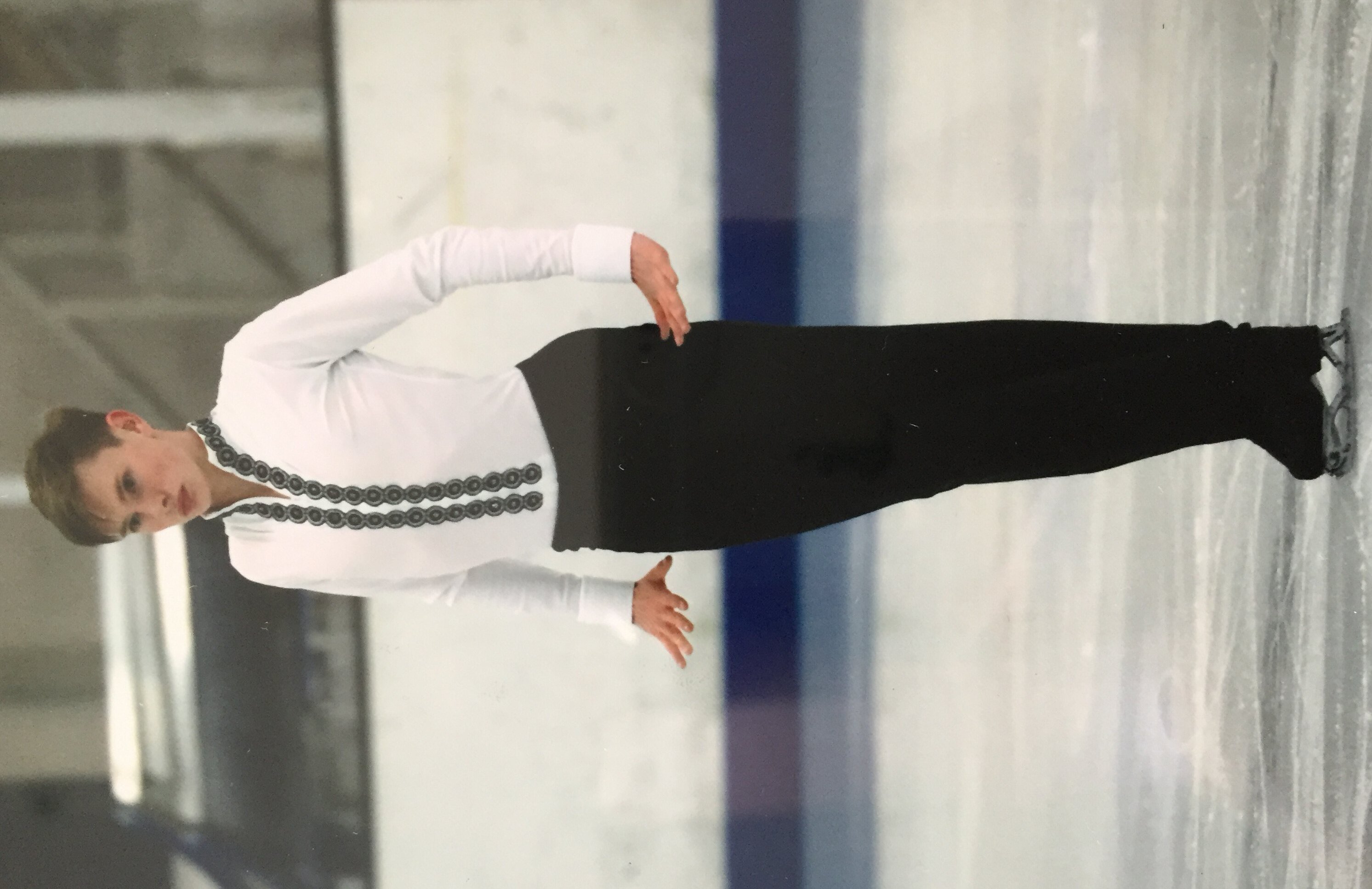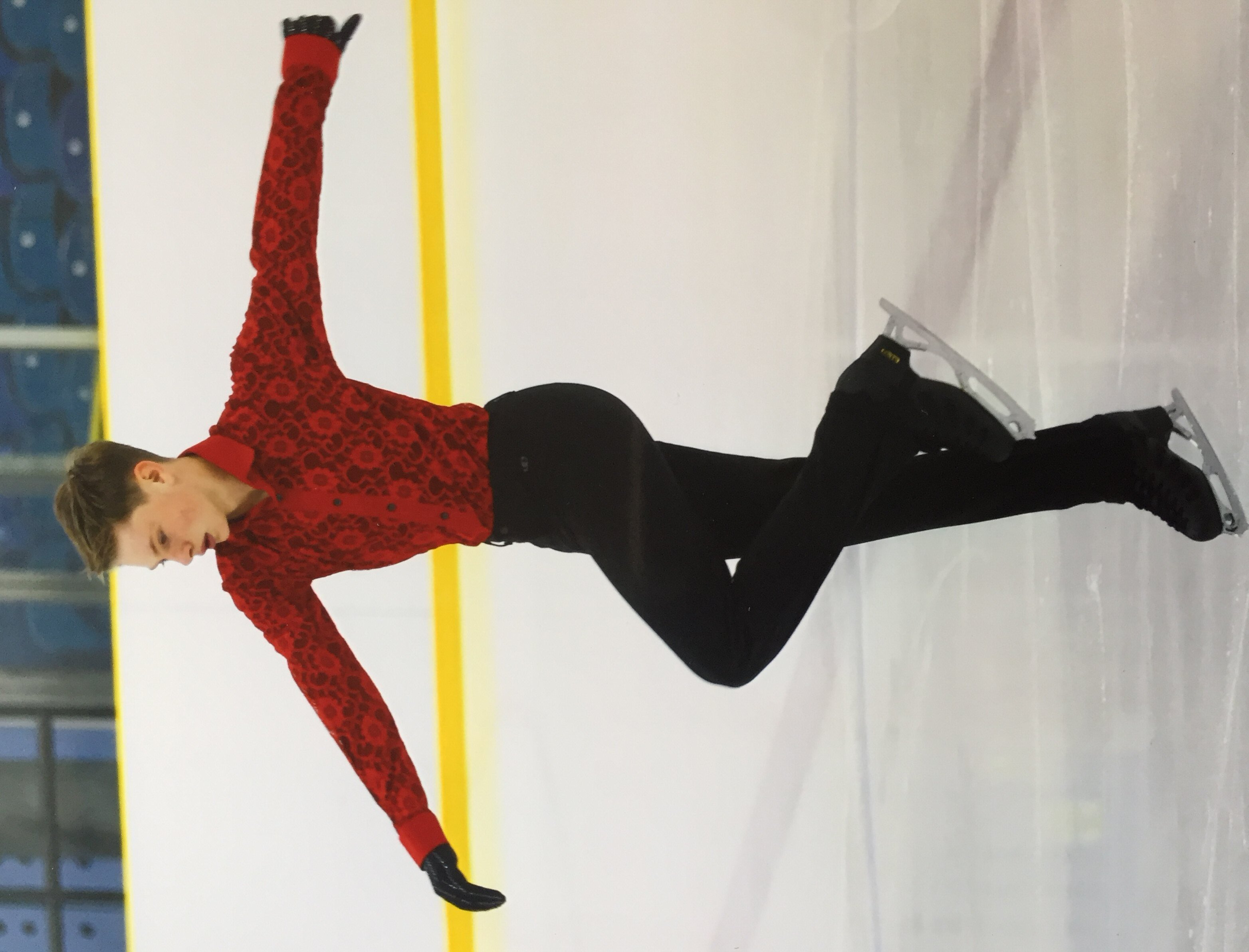 Solo figure skater in red lace body shirt Solo figure skater in white body shirt