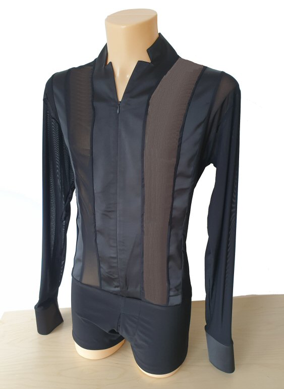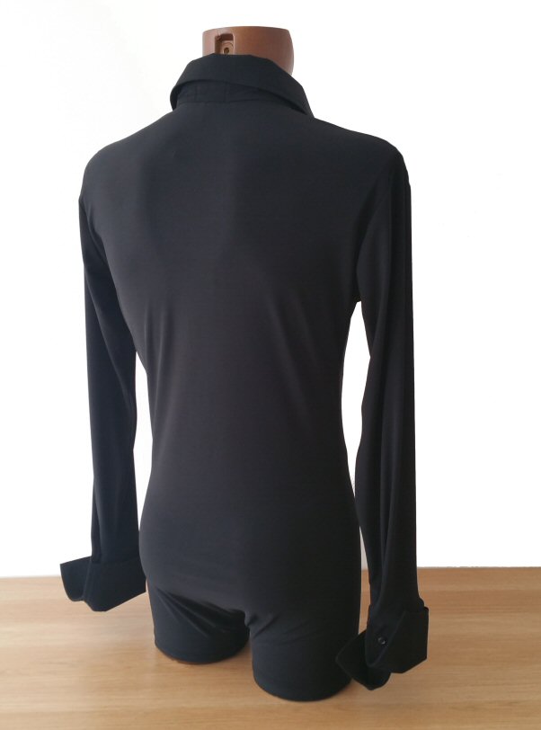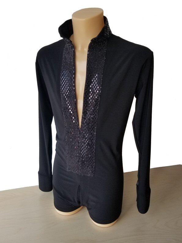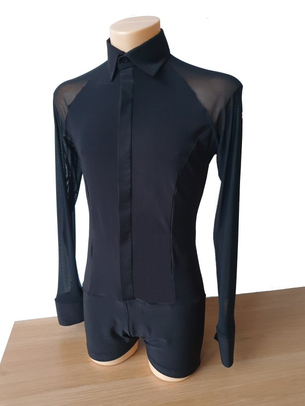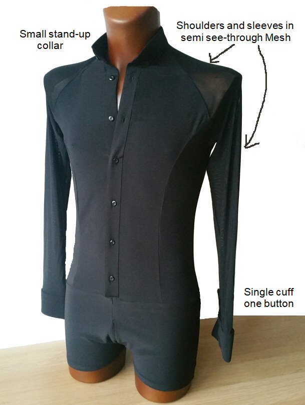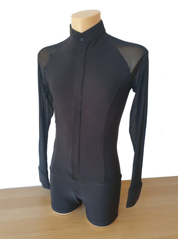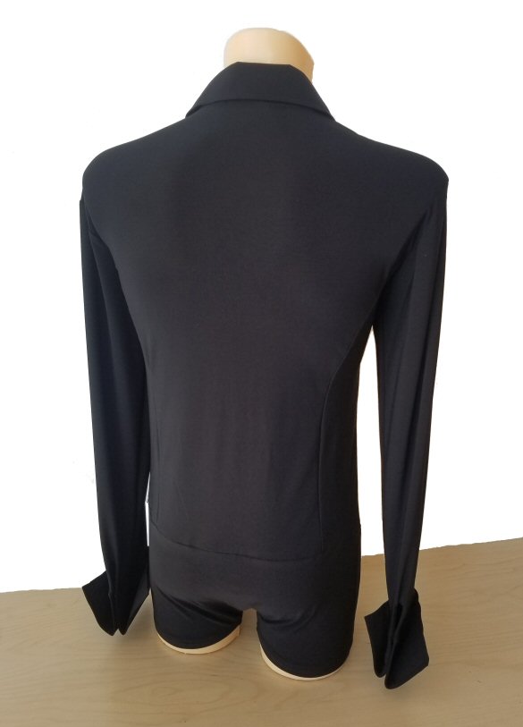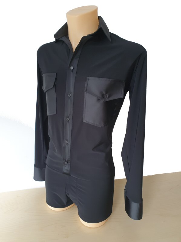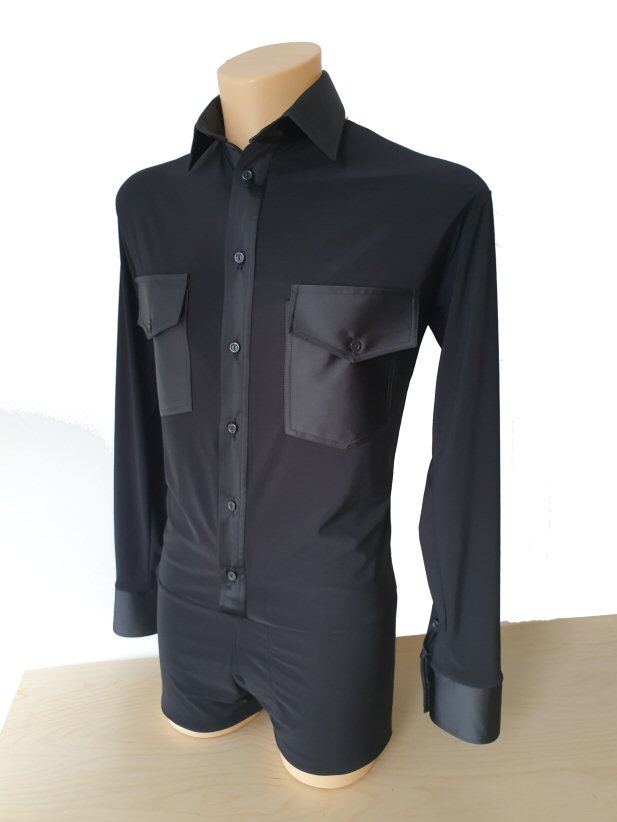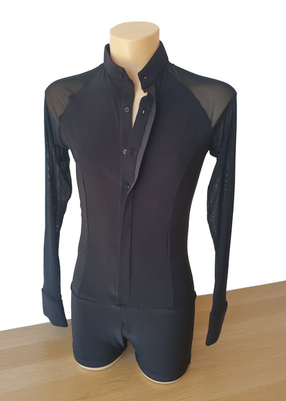 Black Snake effect Raglan cut, stretchy Latin shirt on shorts. Single cuff with button. Black. |