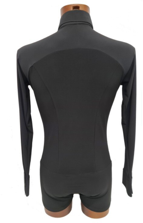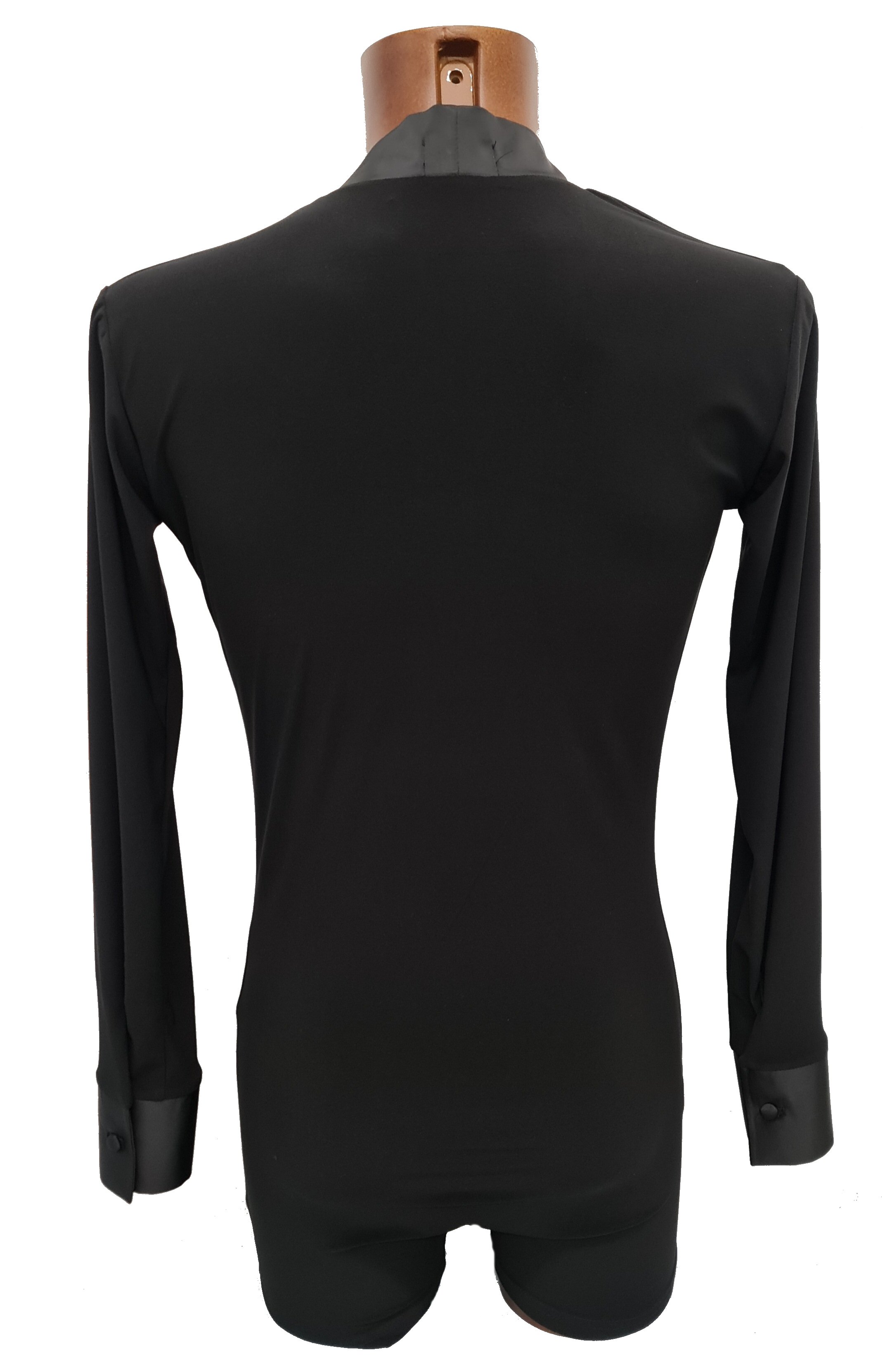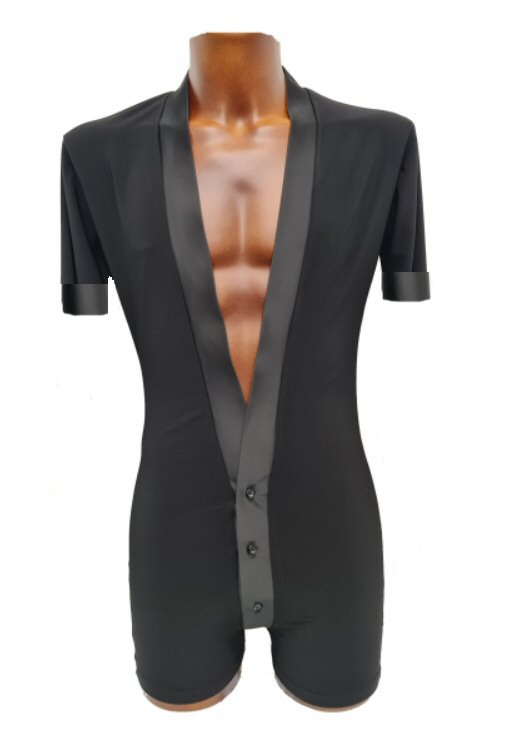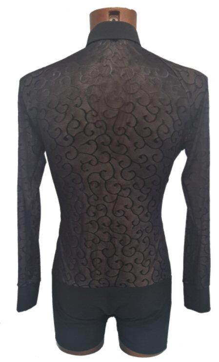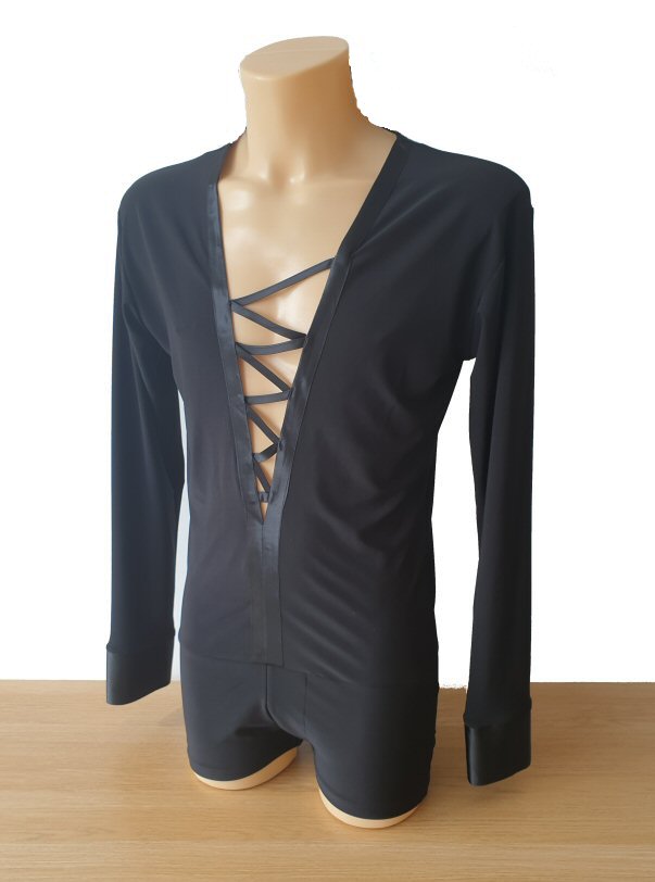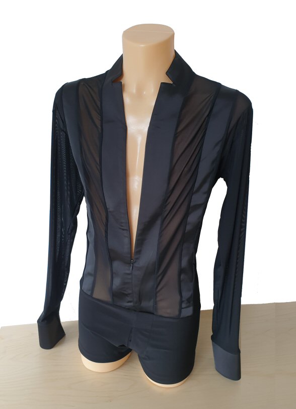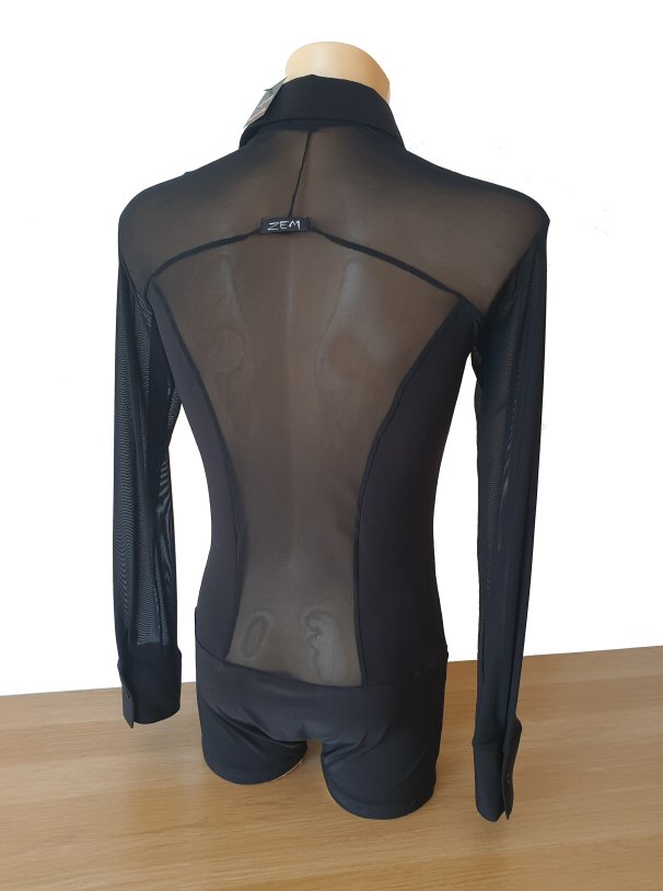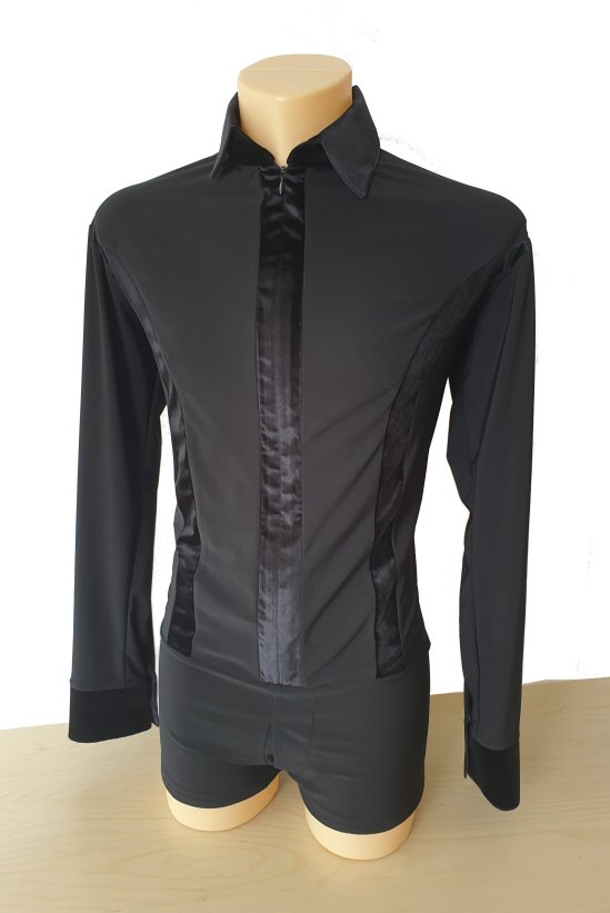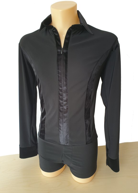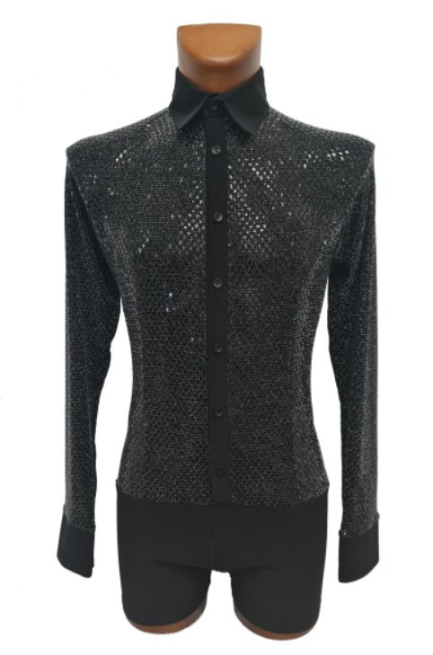 Black Snake effect Raglan cut, stretchy Latin shirt on shorts. Single cuff with button. Black. |
