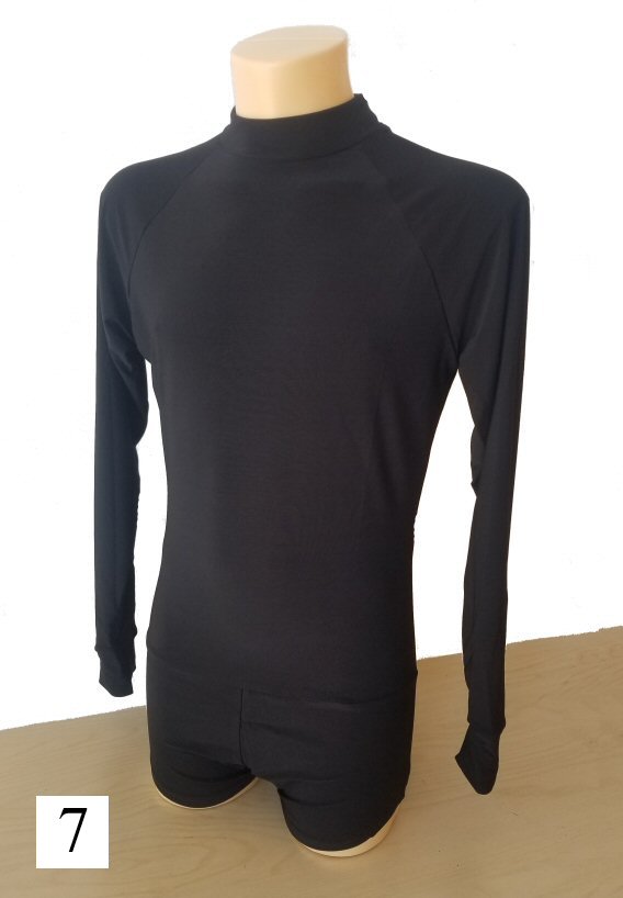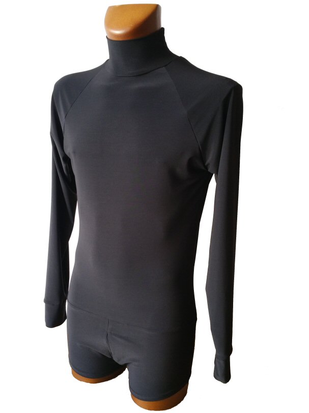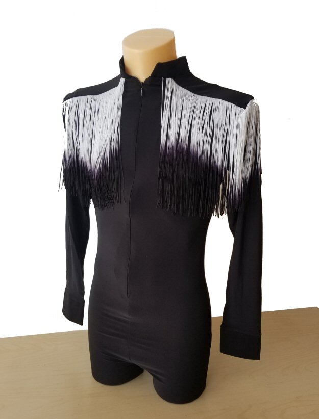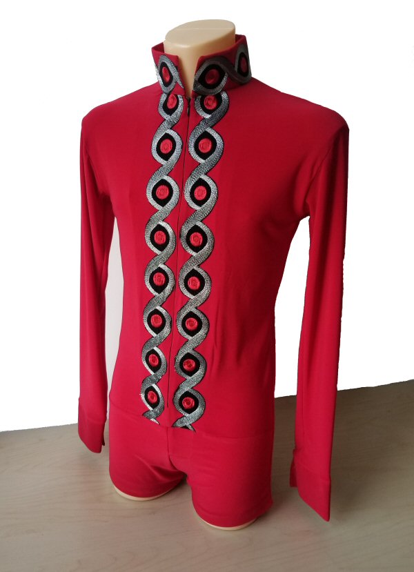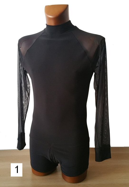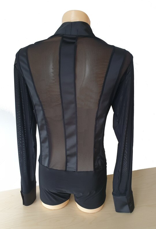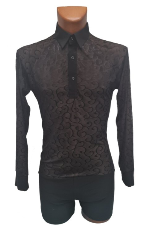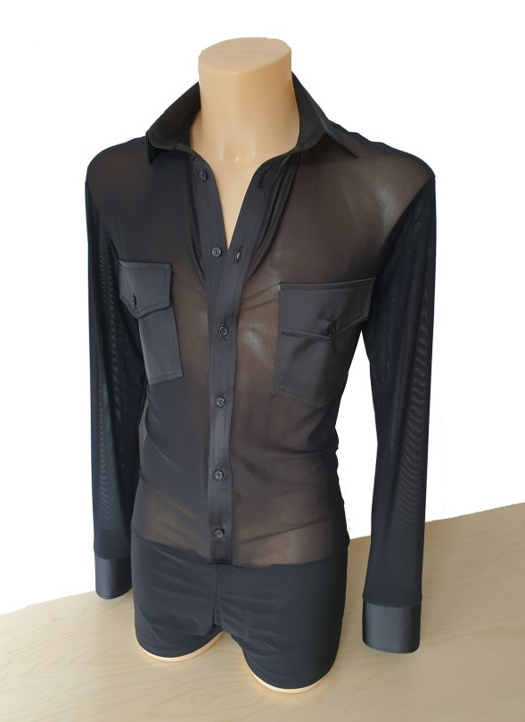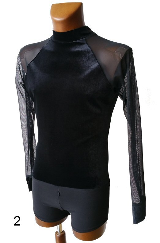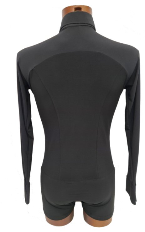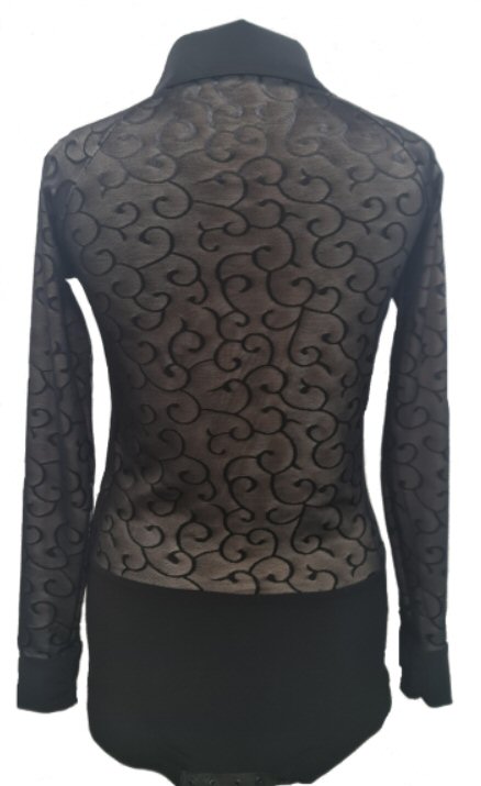 Black Snake effect Raglan cut, stretchy Latin shirt on shorts. Single cuff with button. Black. |