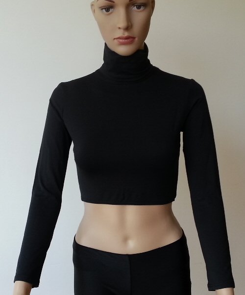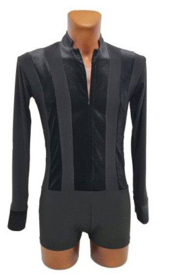 Macho stripe Stretch Latin comp. body shirt with Zip, Black jersey/velvet, Small 36 inch chest