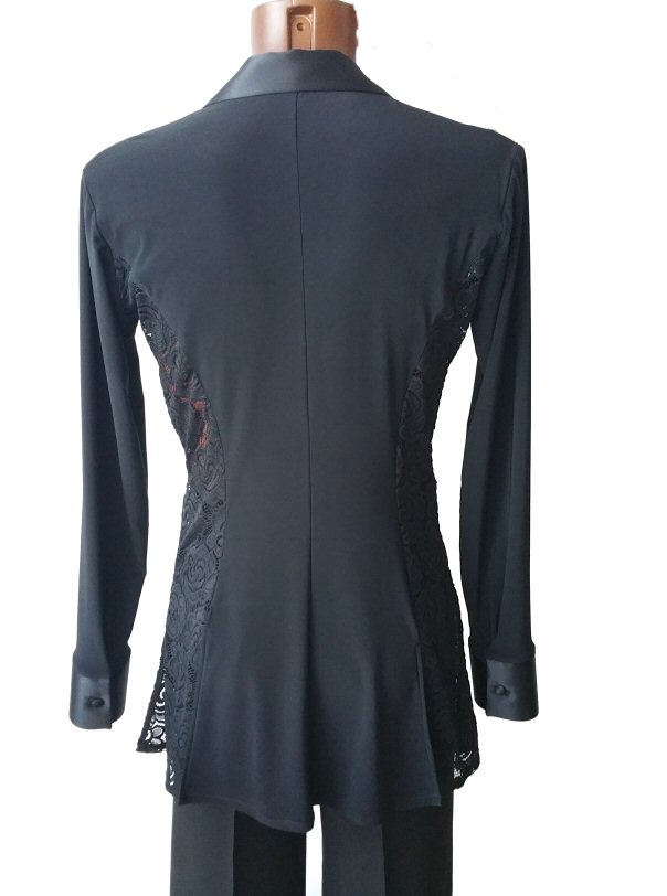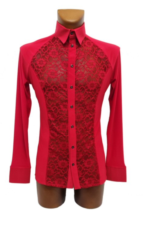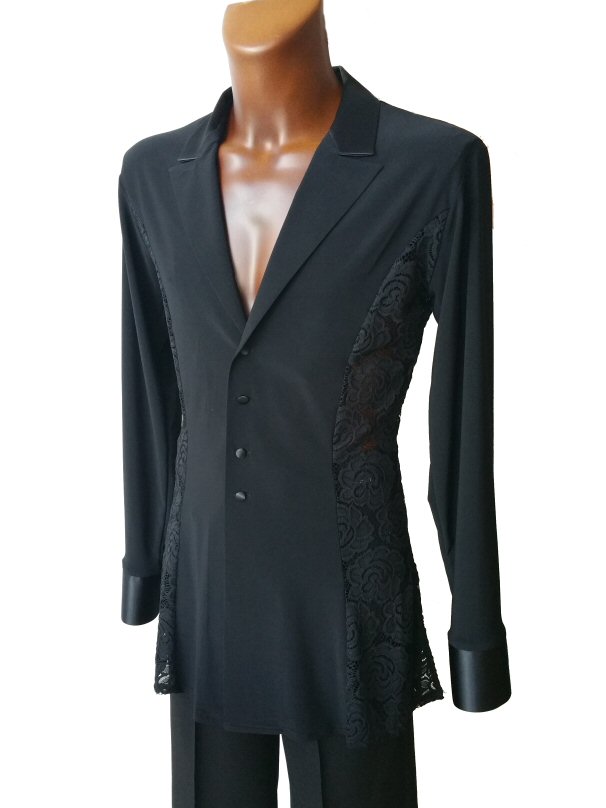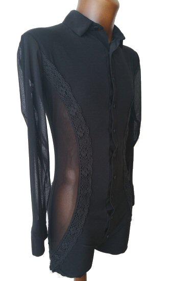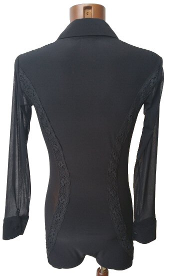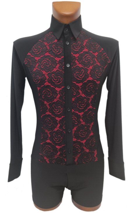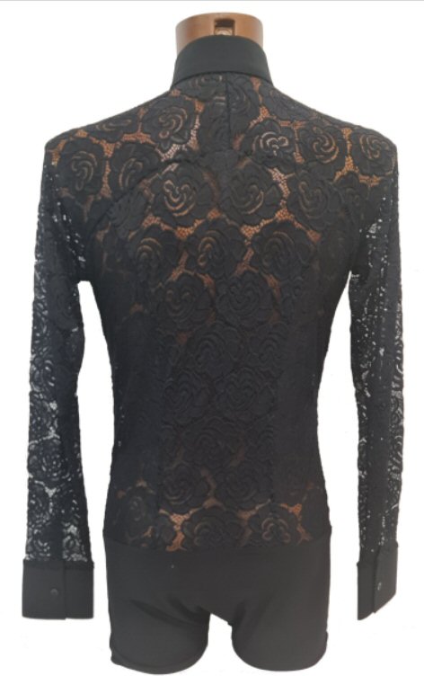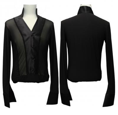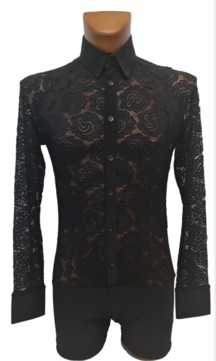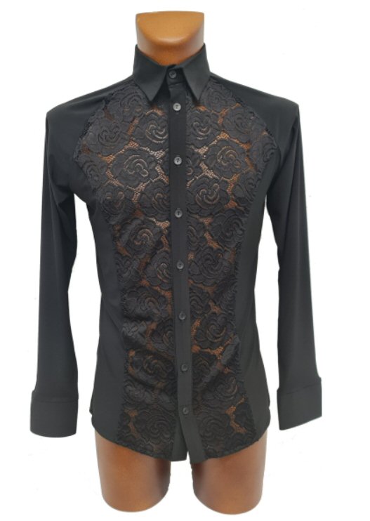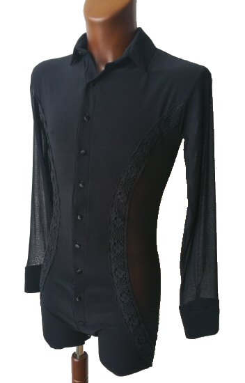 Mens Latin Shirt with Mesh and Lace inserts, Black, Small