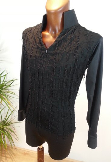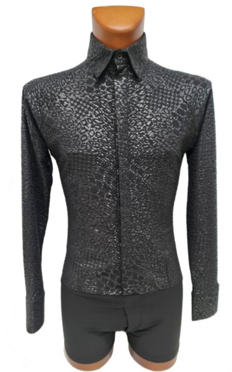 Sparkle under spotlight Latin Shirt, Black, Large 40 inch chest, 16" collar