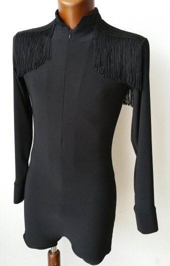 Mens Black Fringe Latin shirt built on shorts, Black, Large (Chest 40-42" / 102-107cm) with 2" stretch