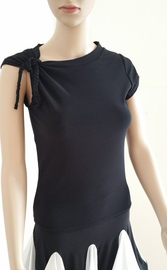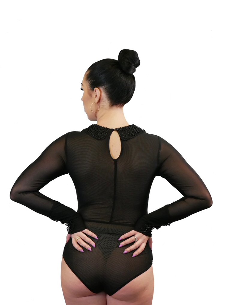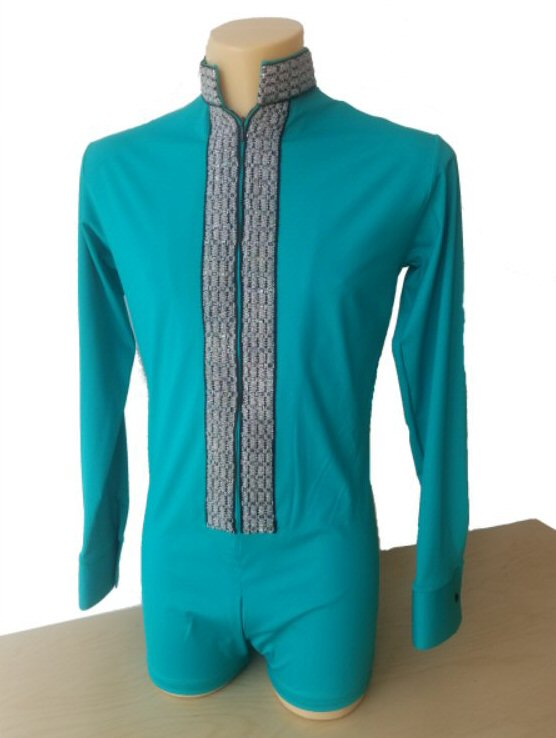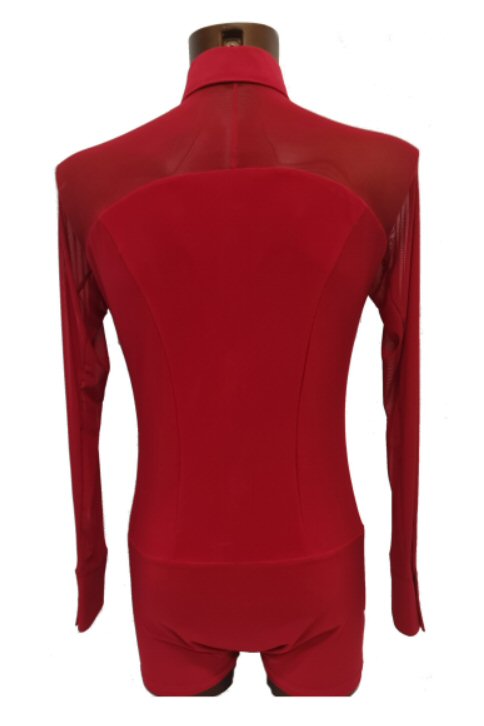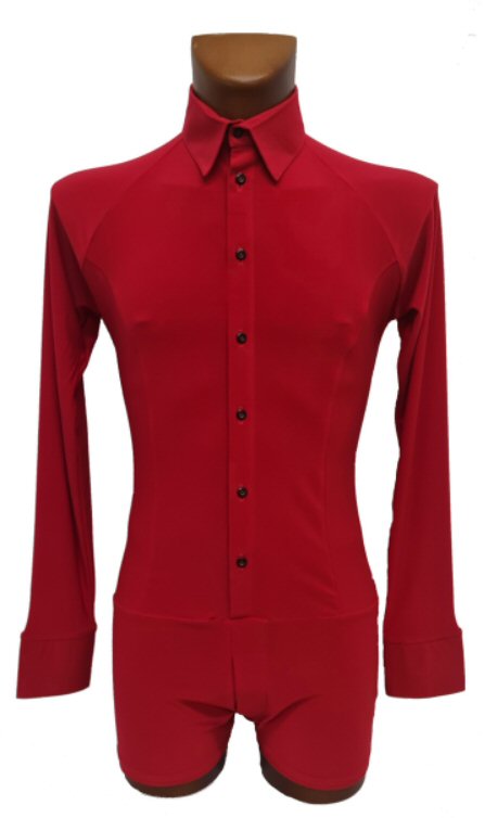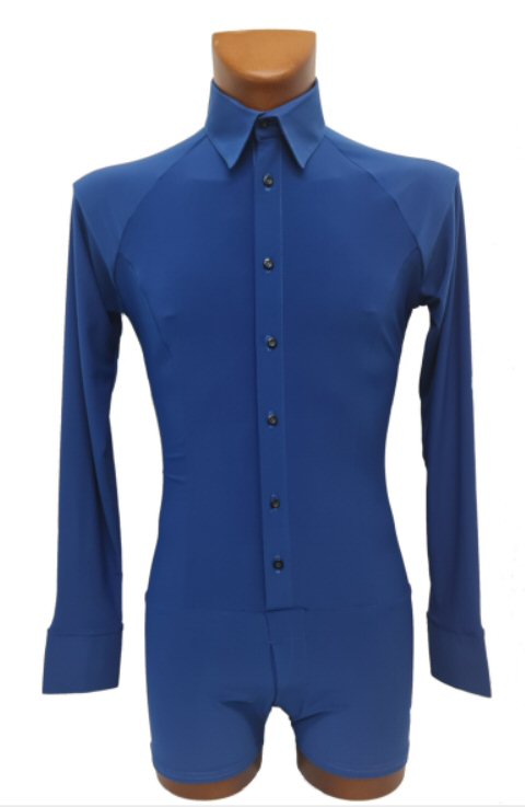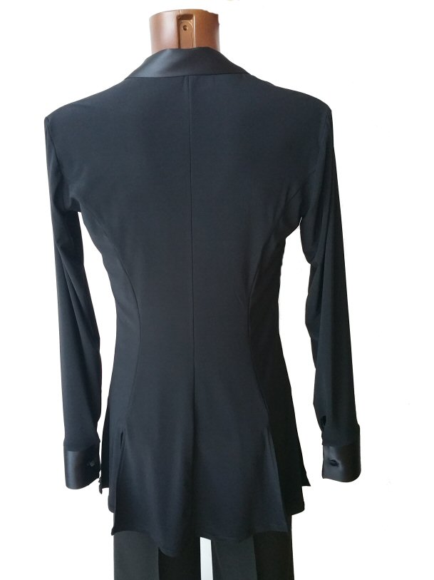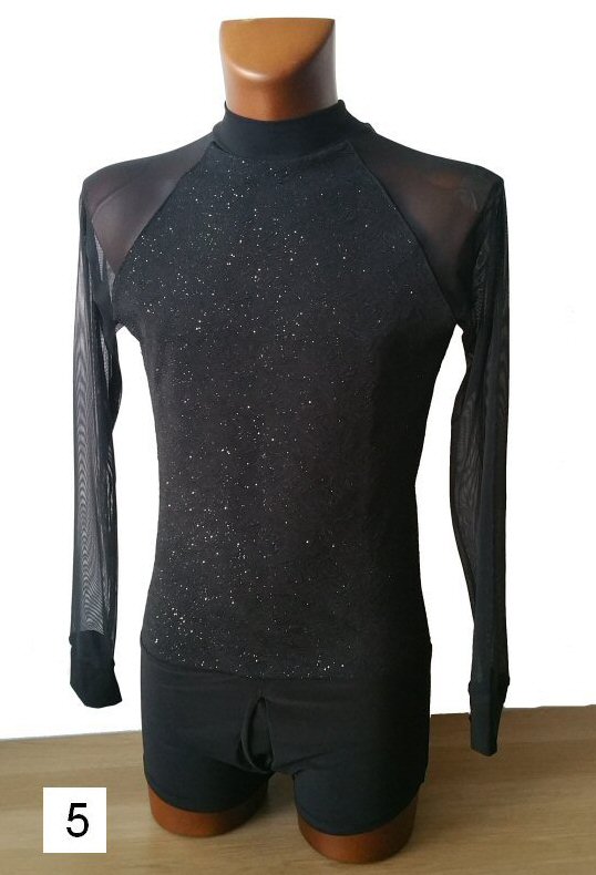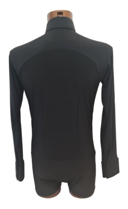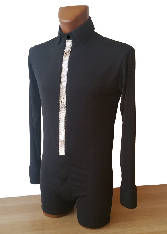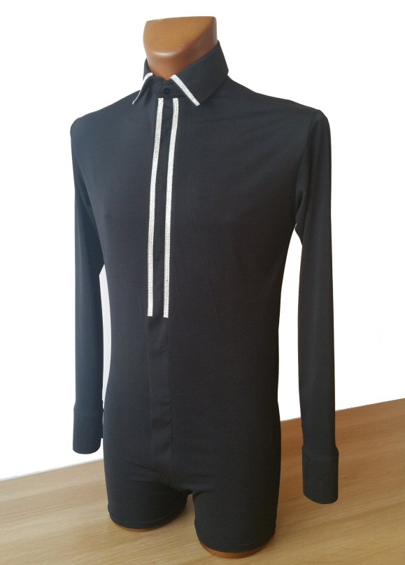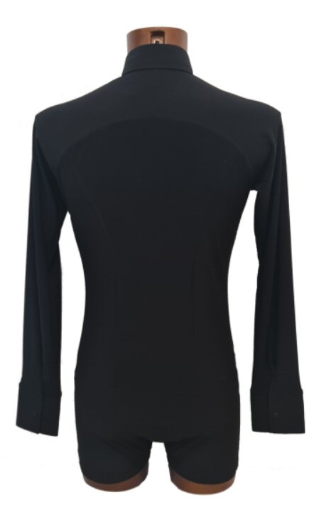 Stretchy Ballroom competition shirt built on shorts, Black,