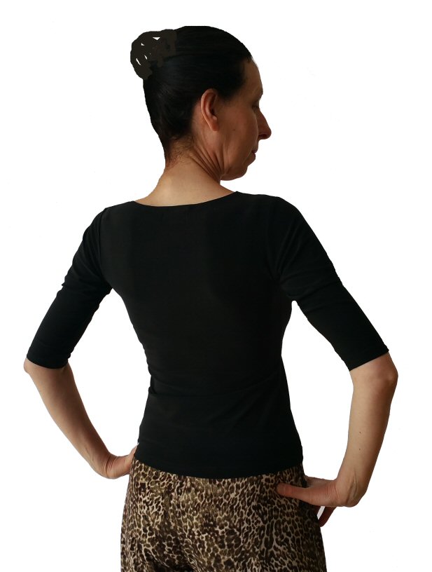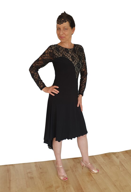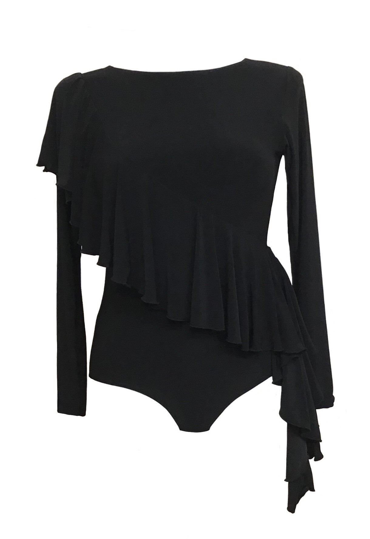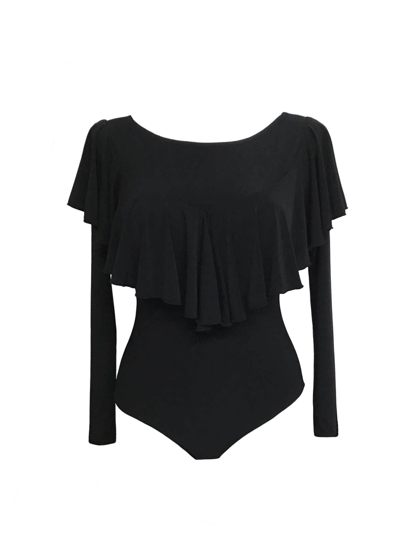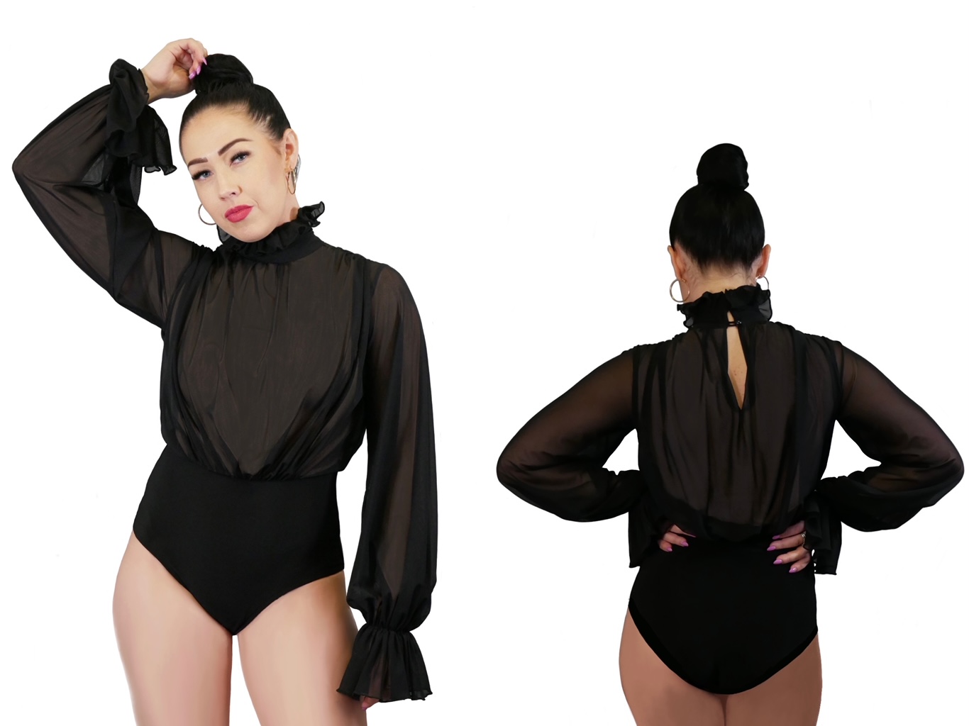 Stretchy Ballroom competition shirt built on shorts, Black,