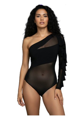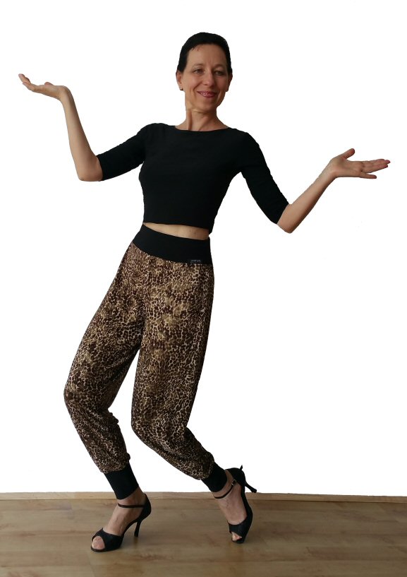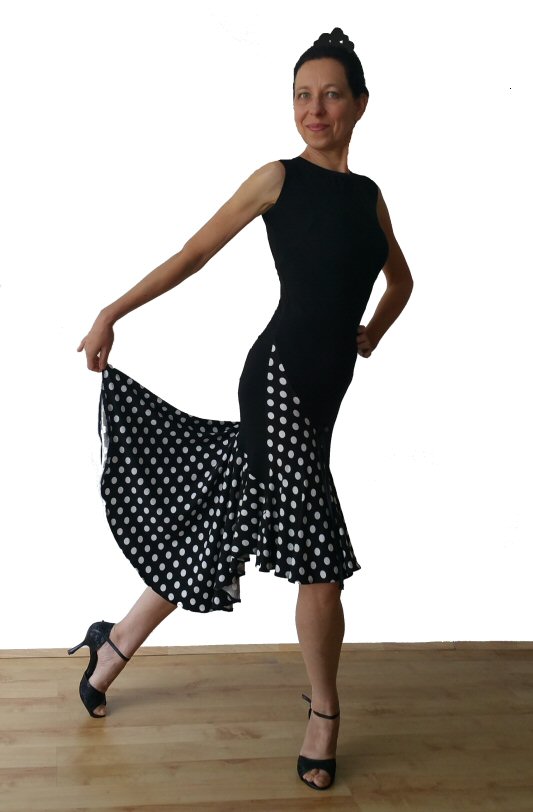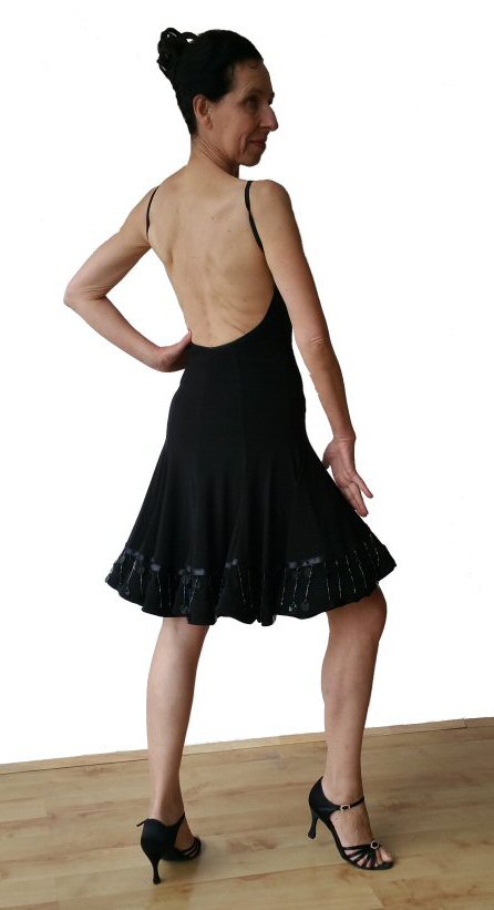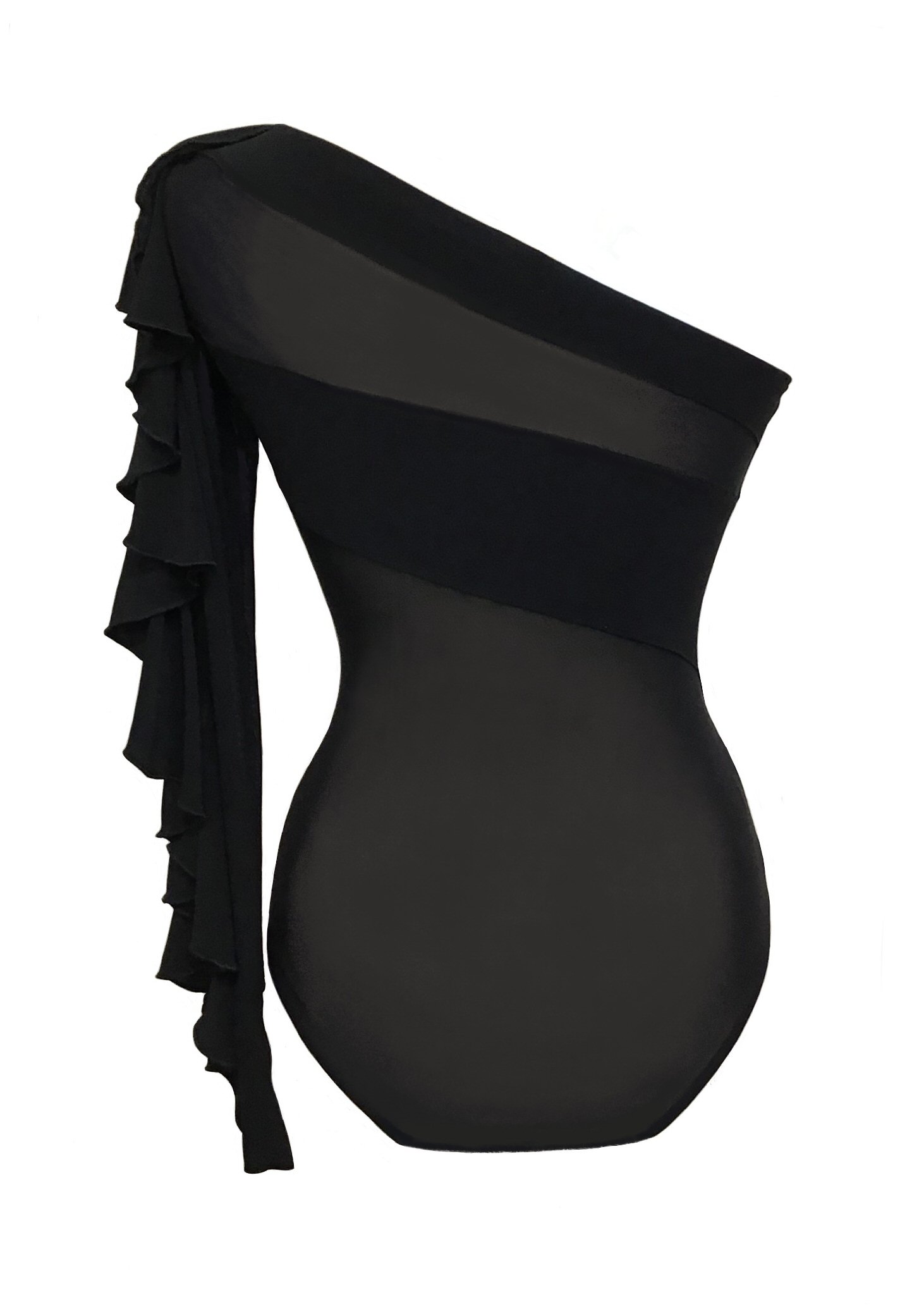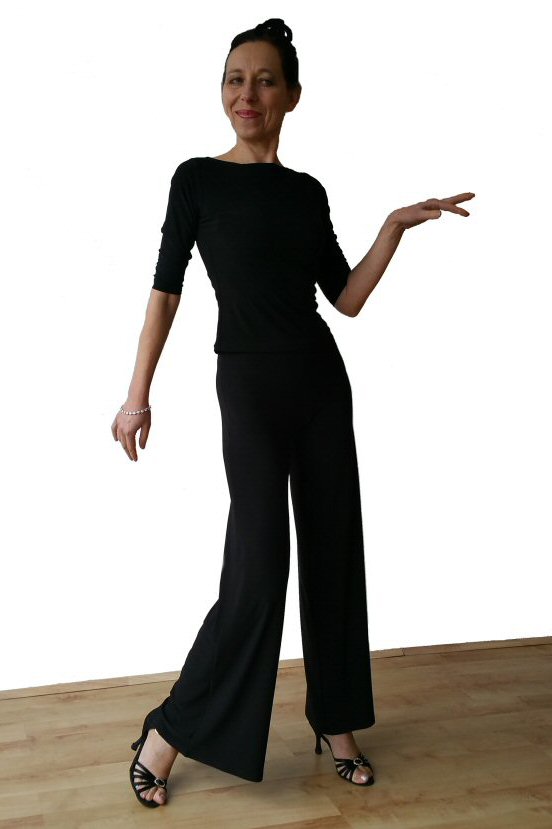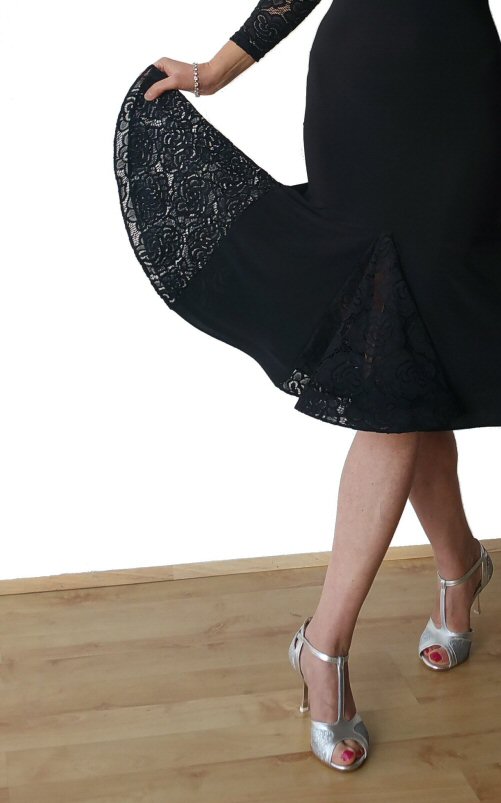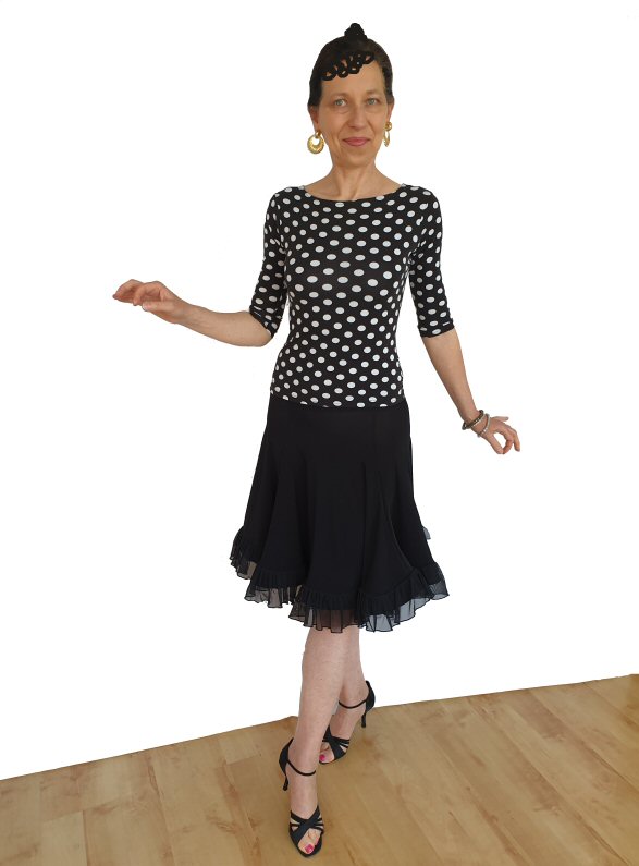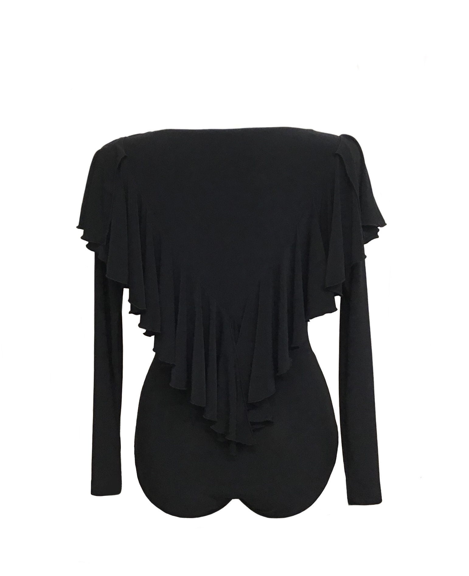 Stretchy Ballroom competition shirt built on shorts, Black,