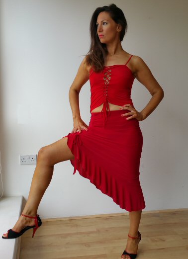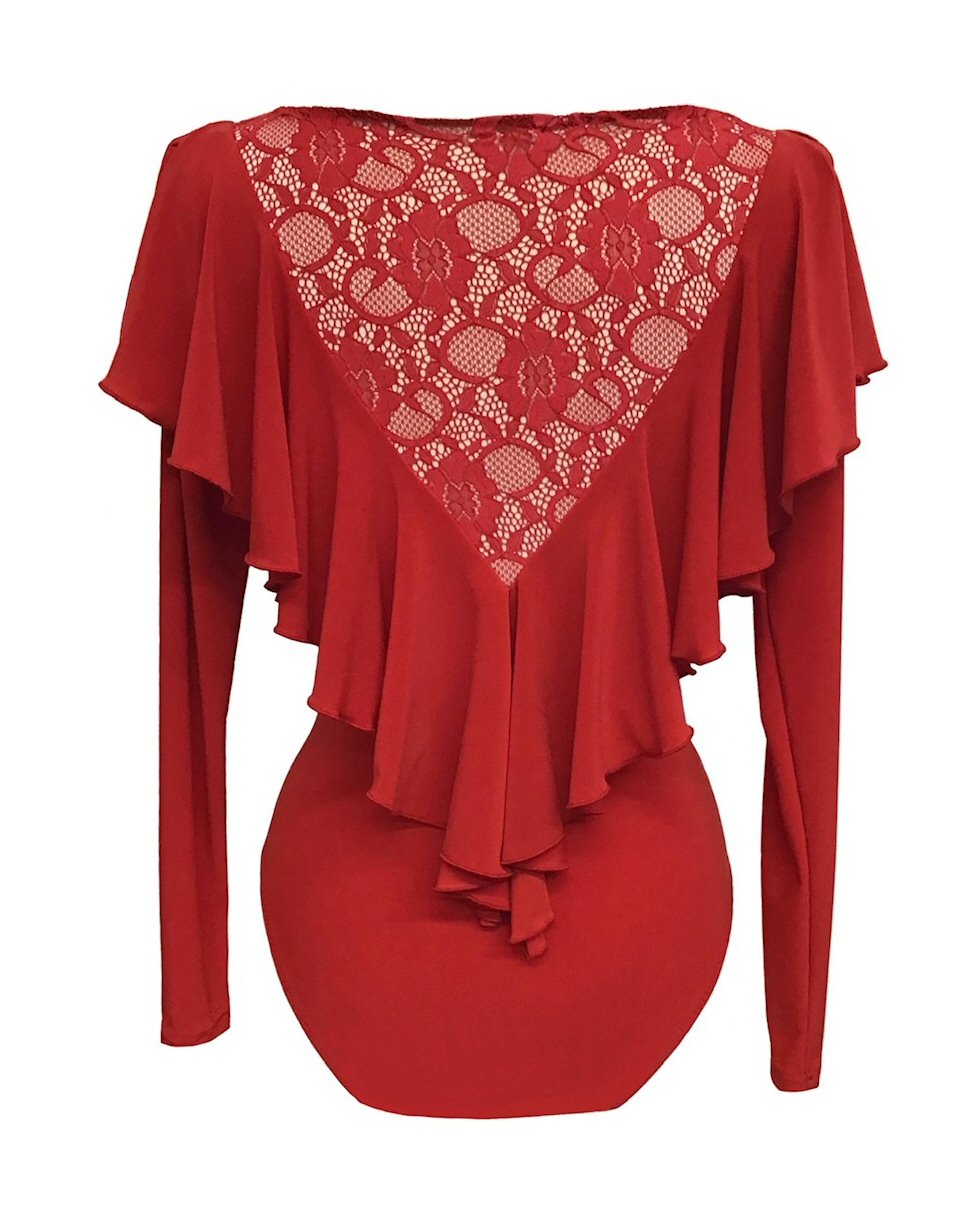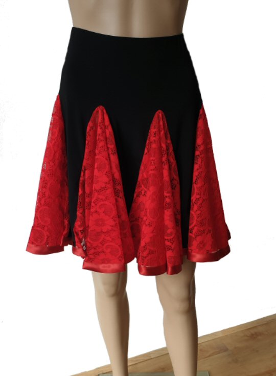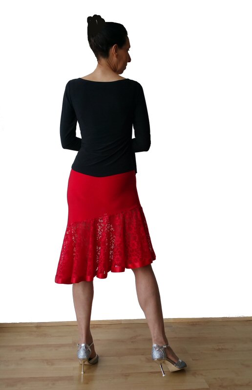 Stretchy Raglan shirt, Red/Red lace, Large 38-42 inch chest, 16in collar